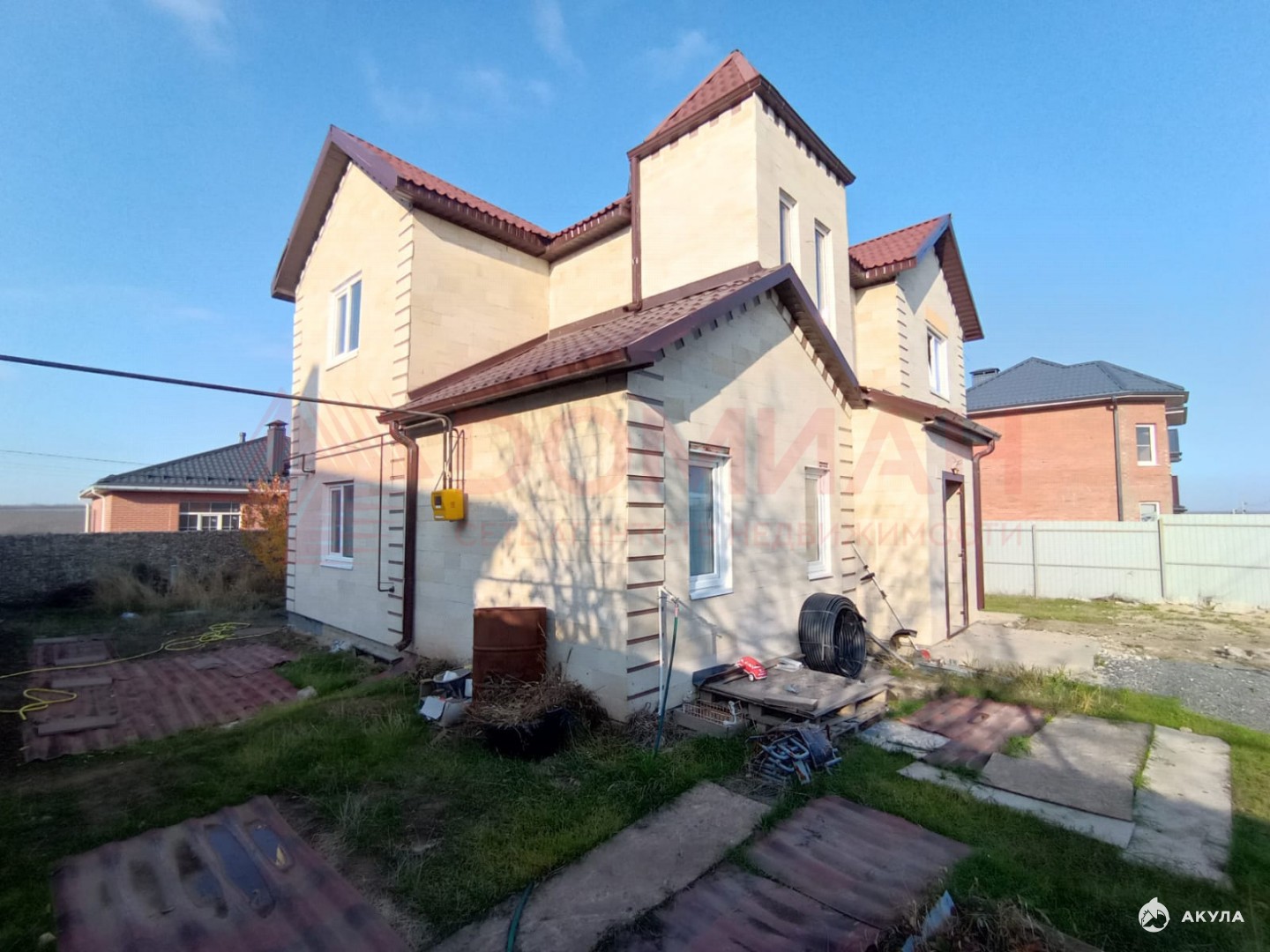 В центре поселка Российский, на возвышенности в закрытом поселке , продается шикарный, просторный дом.