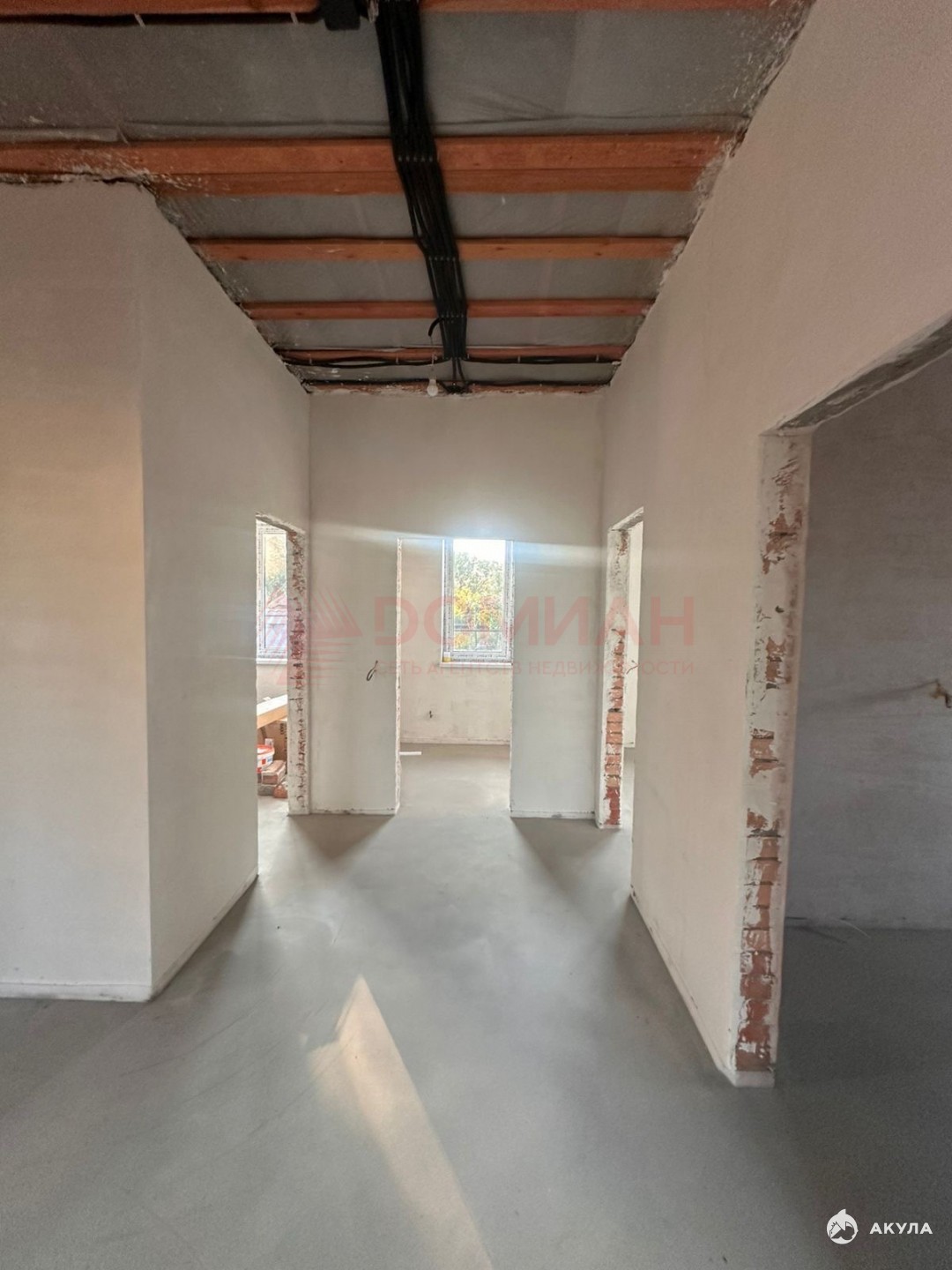 Предчистовая отделка, стяжка полов, теплые полы везде, кроме спален, штукатурка под обои, котел, радиаторы.