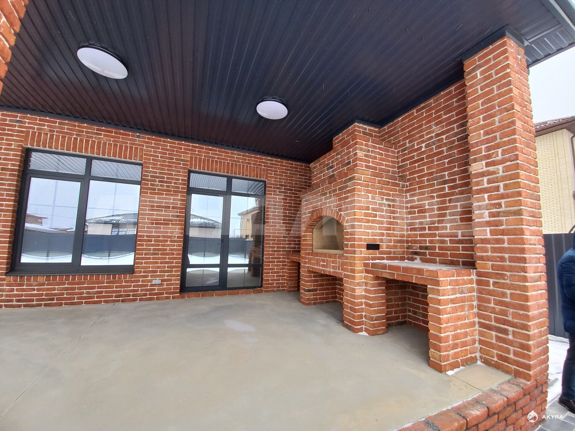 Двор выложен тротуарной плиткой, во дворе установлен навес на 3 машины. На террасе выложен кирпичный мангал из жаропрочного кирпича, тёплый пол по периметру всего первого этажа и на террасе. Окна трёхкамерные. Утепление крыши выполнено по новым технология. В доме 2 сан.узла. Осталось сделать ремонт по вашему вкусу и жить.
