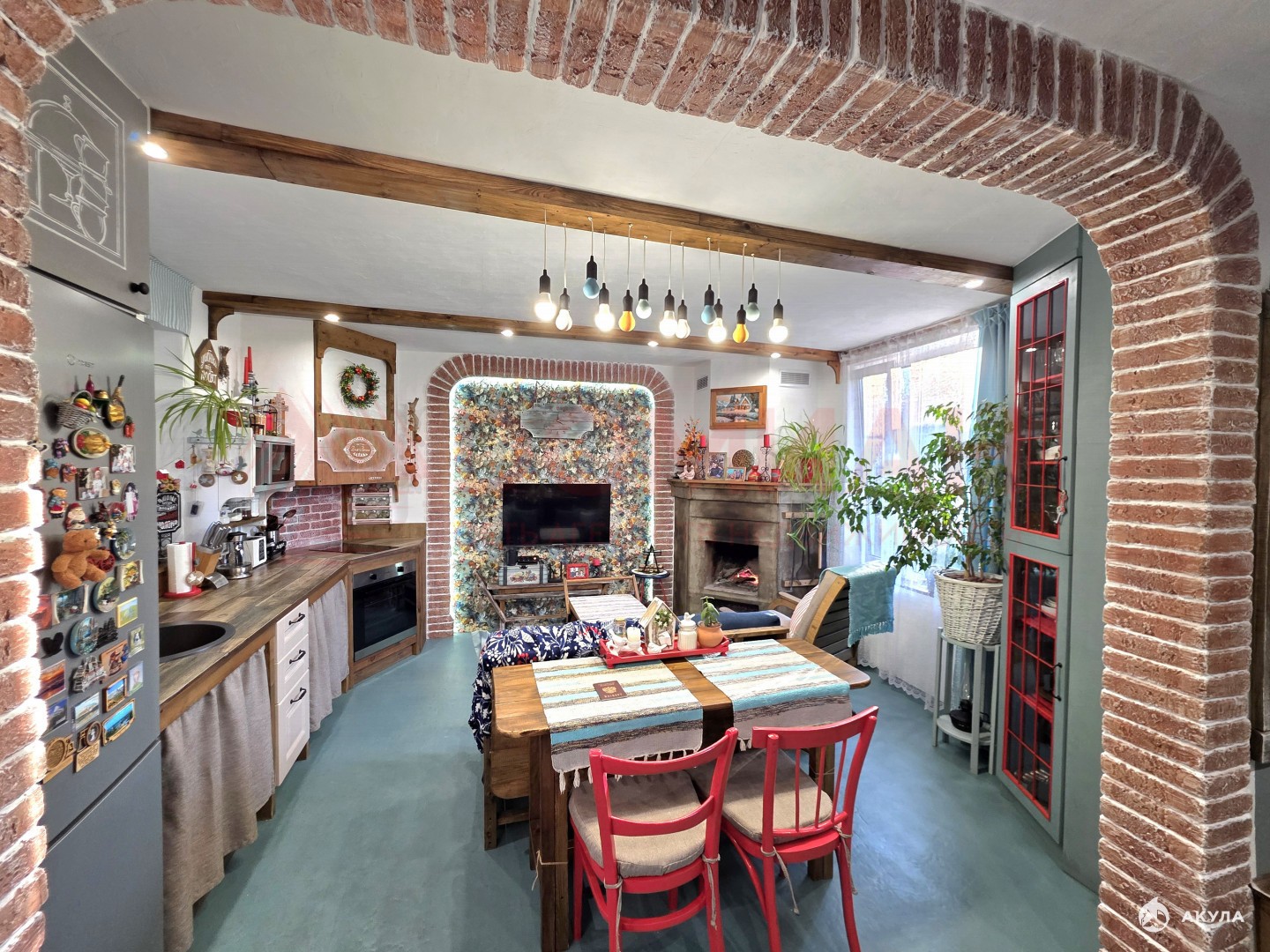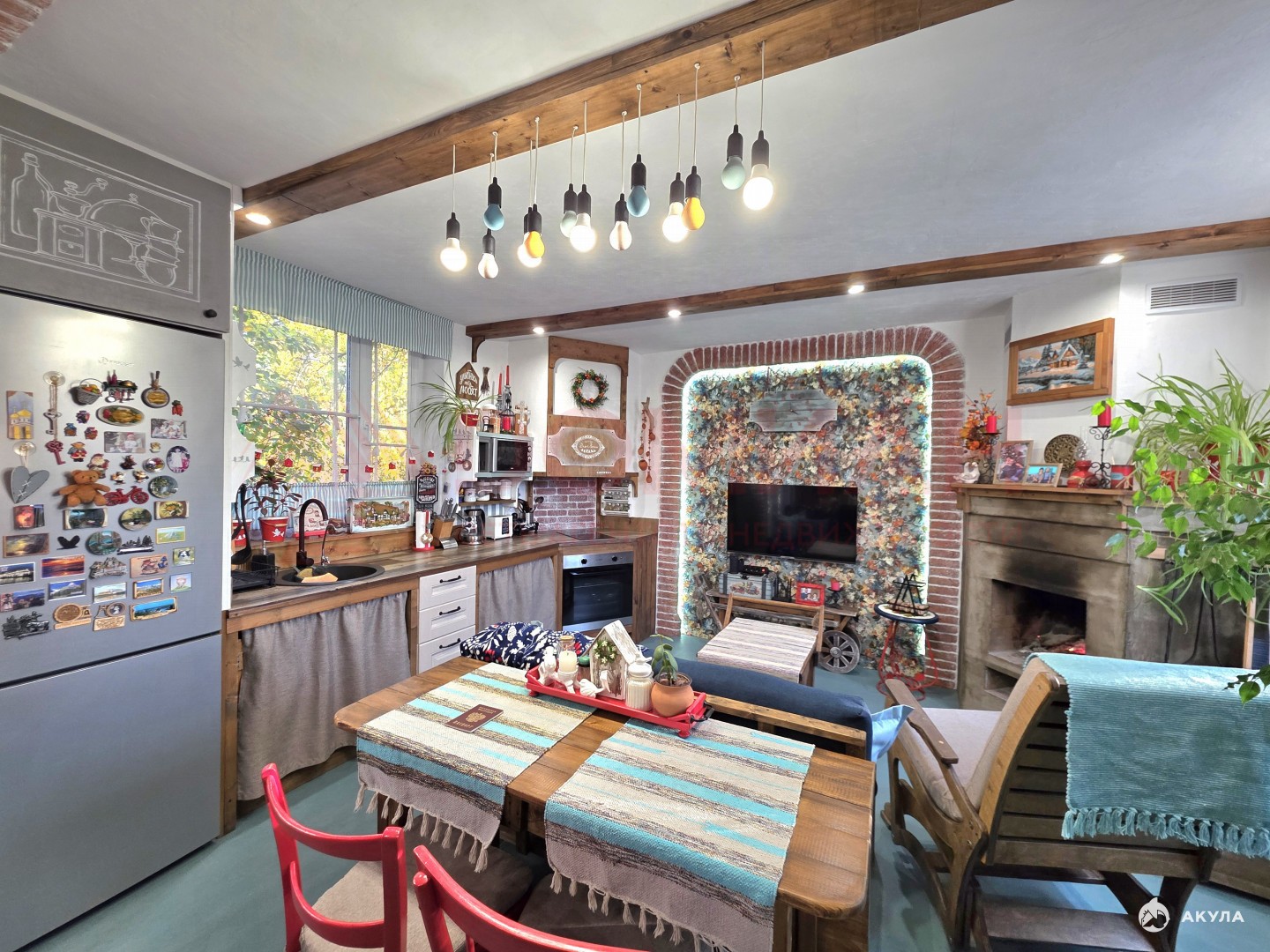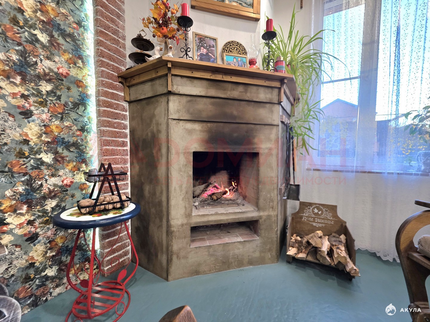 В гостиной рабочий дровяной камин. Отопление на первом этаже - водяной теплый пол от электрического колтла , на втором этаже радиаторы. С водой перебоев нет , установлена система очистки. Есть так-же техническая вода , разведена по участоку. ГАЗ ПО МЕЖЕ. Электричество три фазы , есть интернет.