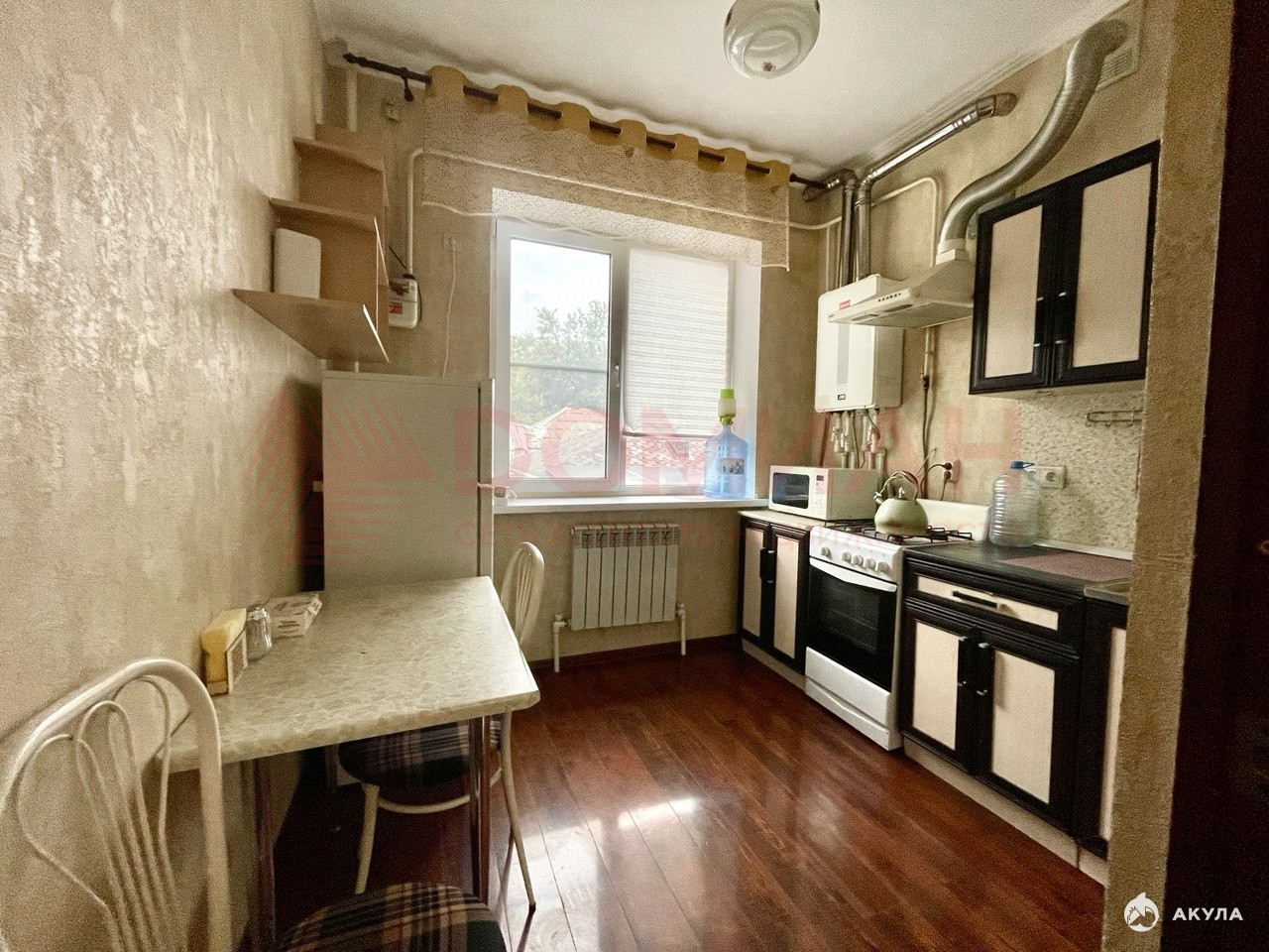 Мебель, кухня, стиральная машинка., газовый котёл для отопления и горячей воды.