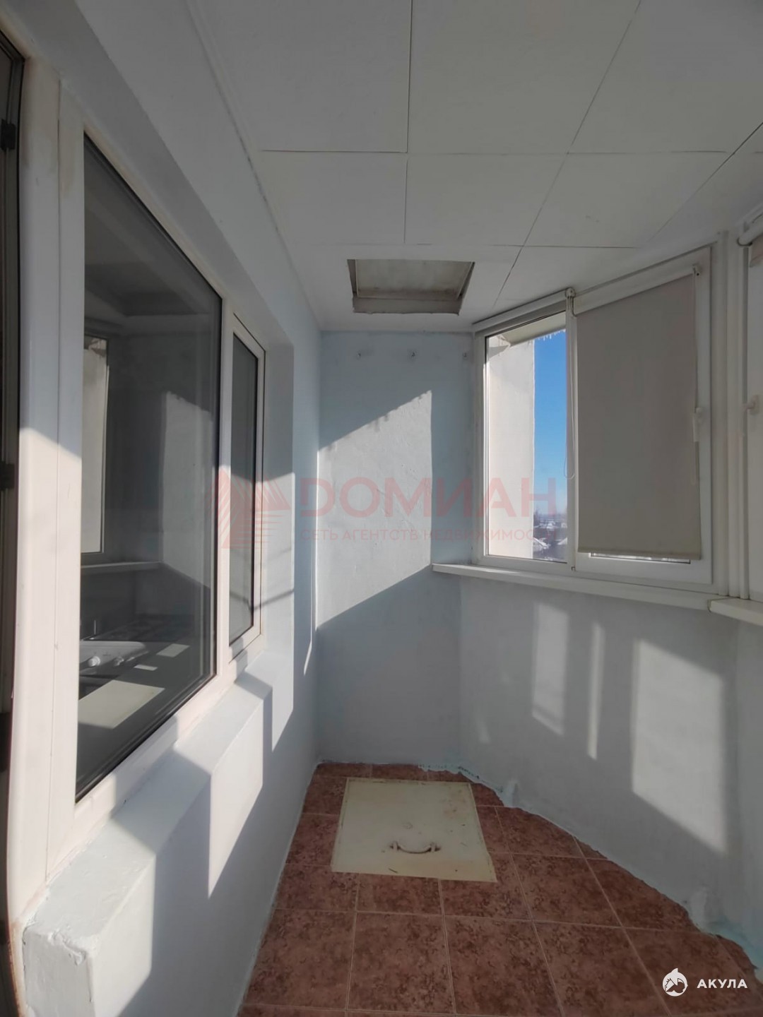 Большая застекленная лоджия с выходом на кухню ( 7.3 м2 ).