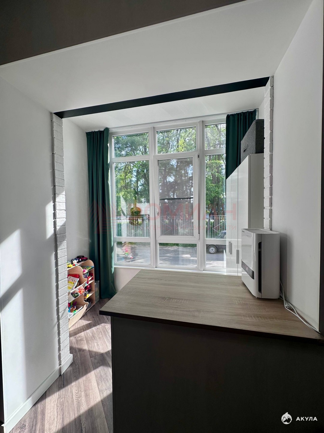 Уютная отапливаемая лоджия с панорамными окнами может стать как зоной отдыха, так и детской игровой. Первый этаж, но окна во двор, тихо.