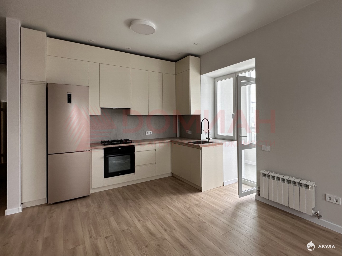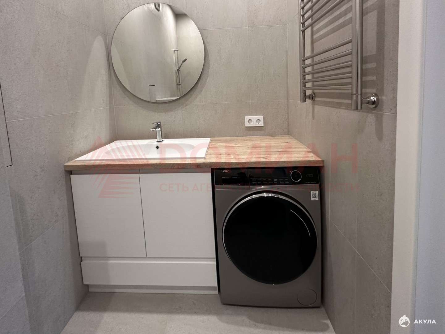 Выполнен качественный современный ремонт: аккуратная отделка, приятные нейтральные оттенки, хорошая сантехника. Продуманная система электрики — розетки там, где они реально нужны, в том числе в шкафах для техники и хранения.