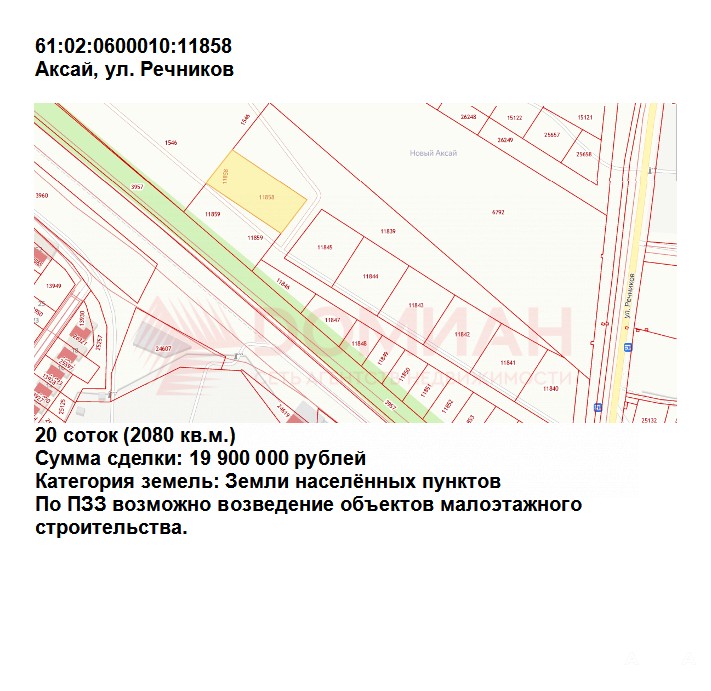 61:02:0600010:11858 - 20 соток = 19 900 000 рублей.