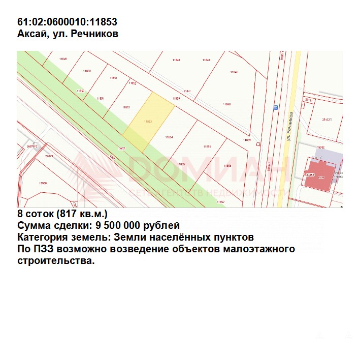61:02:0600010:11853 - 8 соток = 9 500 000 рублей.