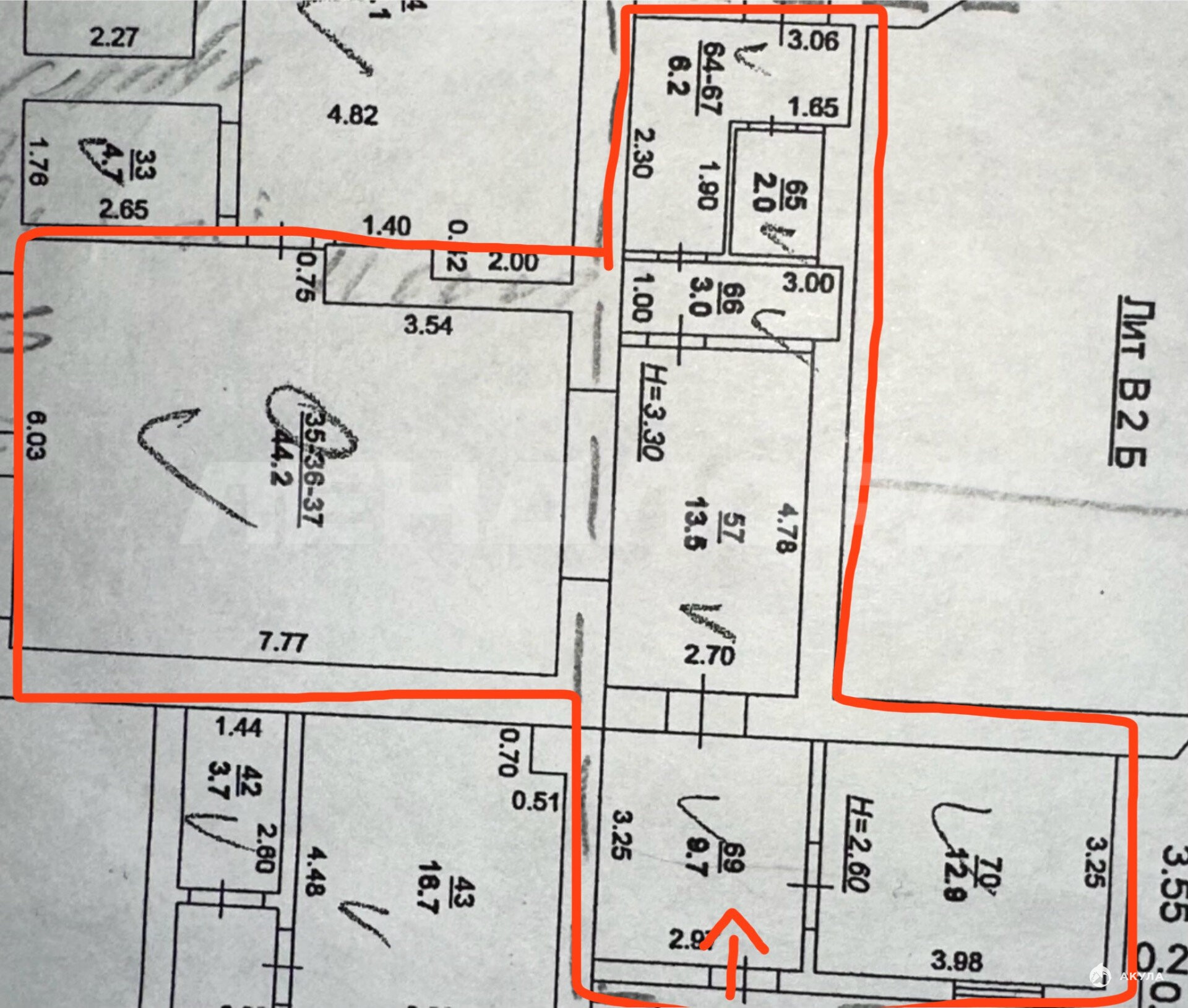 Имеется 4 комнаты, подсобка и сан. узел