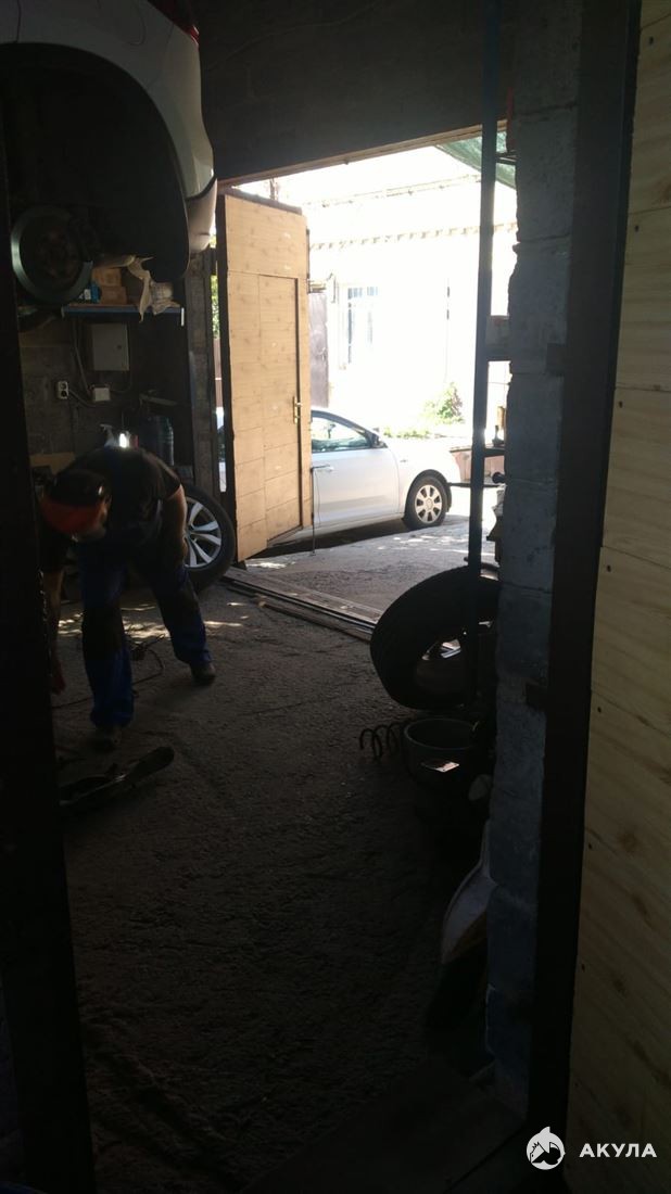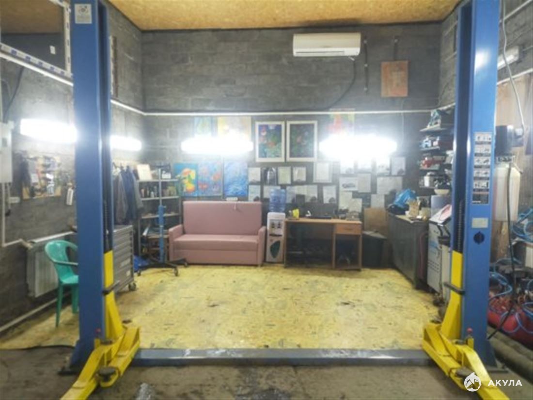 Внутри оборудован верстаком, автоподъемником 4 т, тисками, компрессором, точило, стеллажами, полками, стол, диваном для людей и другим оборудованием.