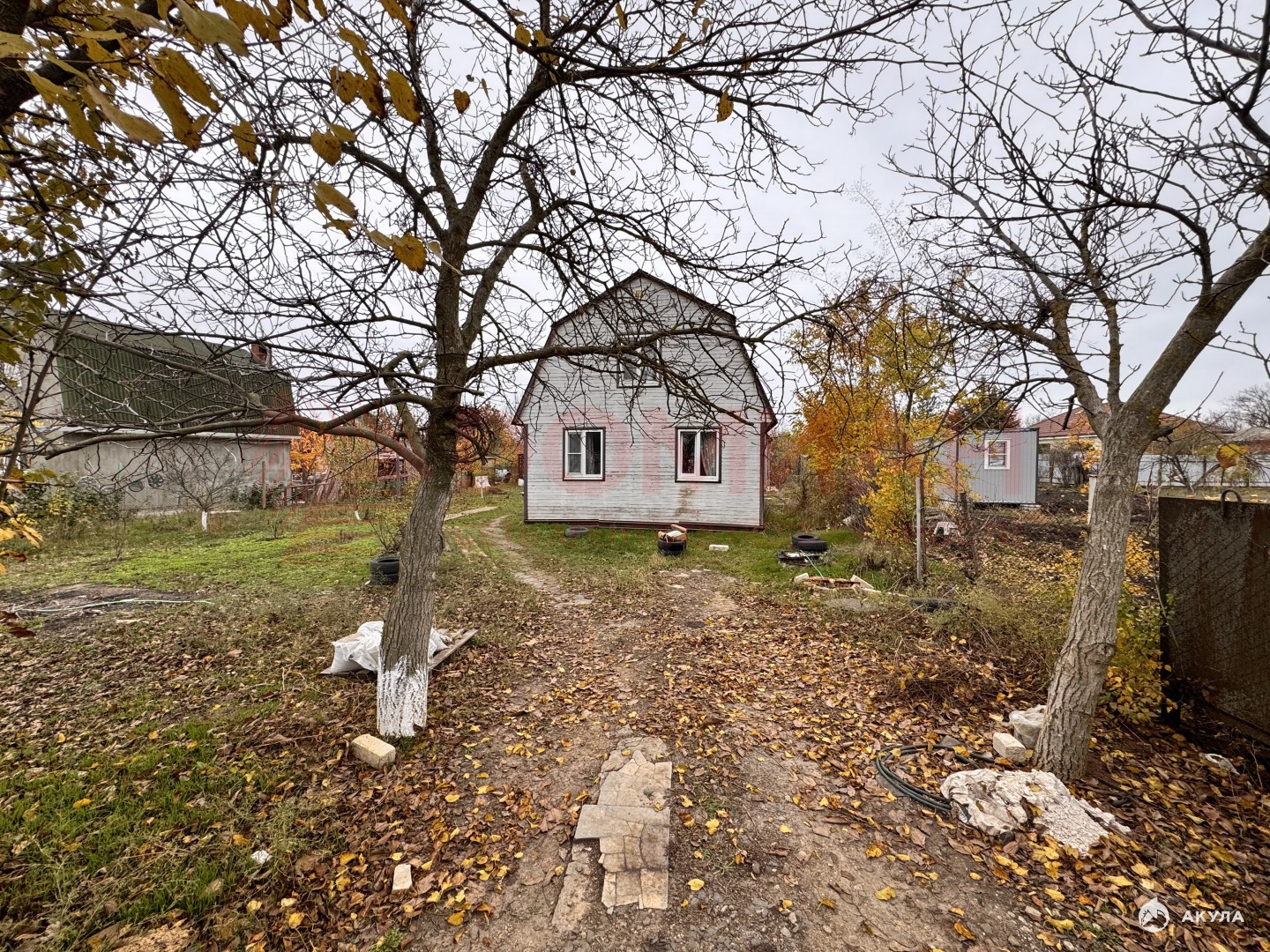 В дом заведена вода из скважины питьевого качества (глубина 50+ метров), заведен свет, отопление происходит с помощью электрокалориферов (~2000р/мес обходится по льготному тарифу). Есть техническая возможность проведения газа (проходит по границе участка под землей), также в СНТ по графику подается поливная вода. На участке растут 2 ореха, 2 вида тютины, персики, яблоки и груши, черешня и еще много всего.