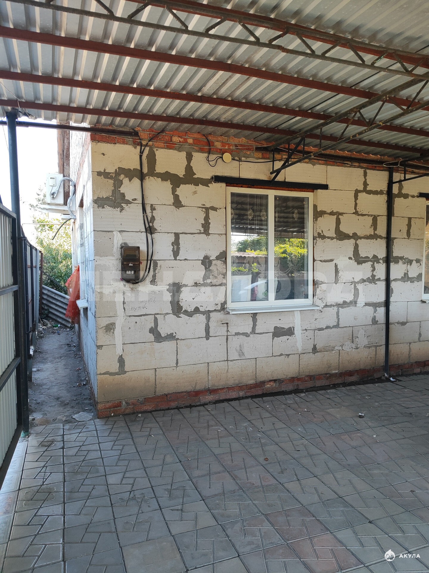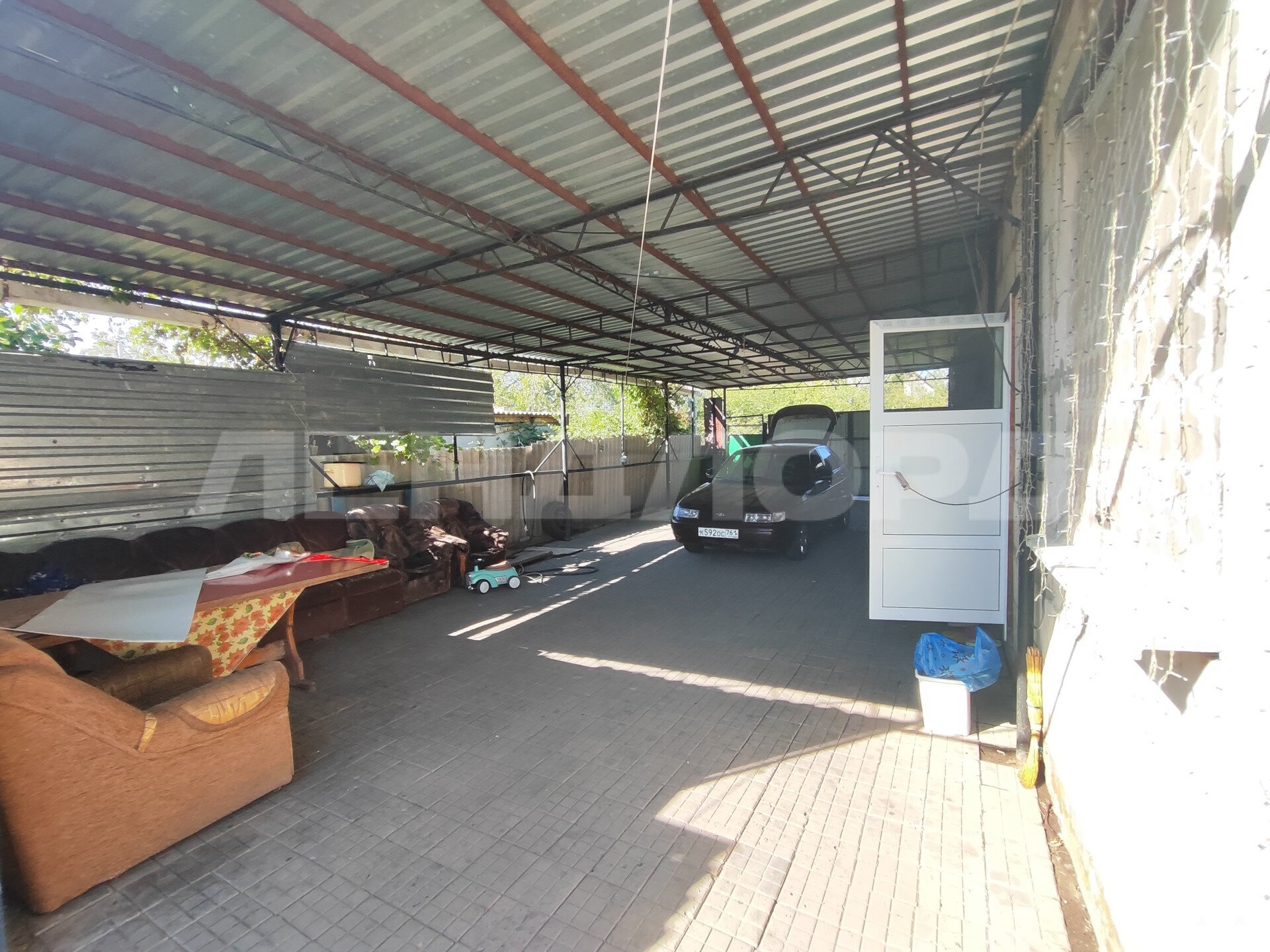 Двор выложен плиткой, имеется навес.