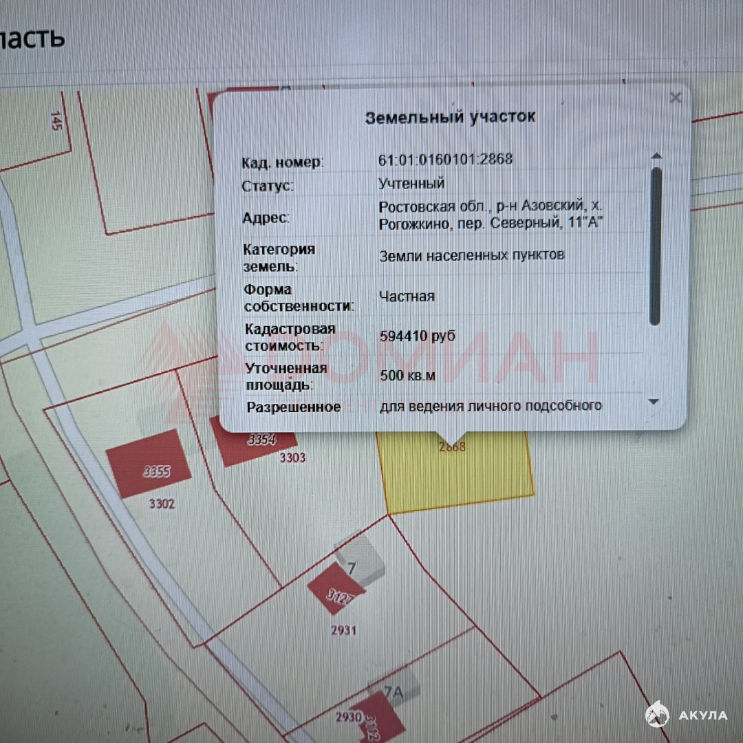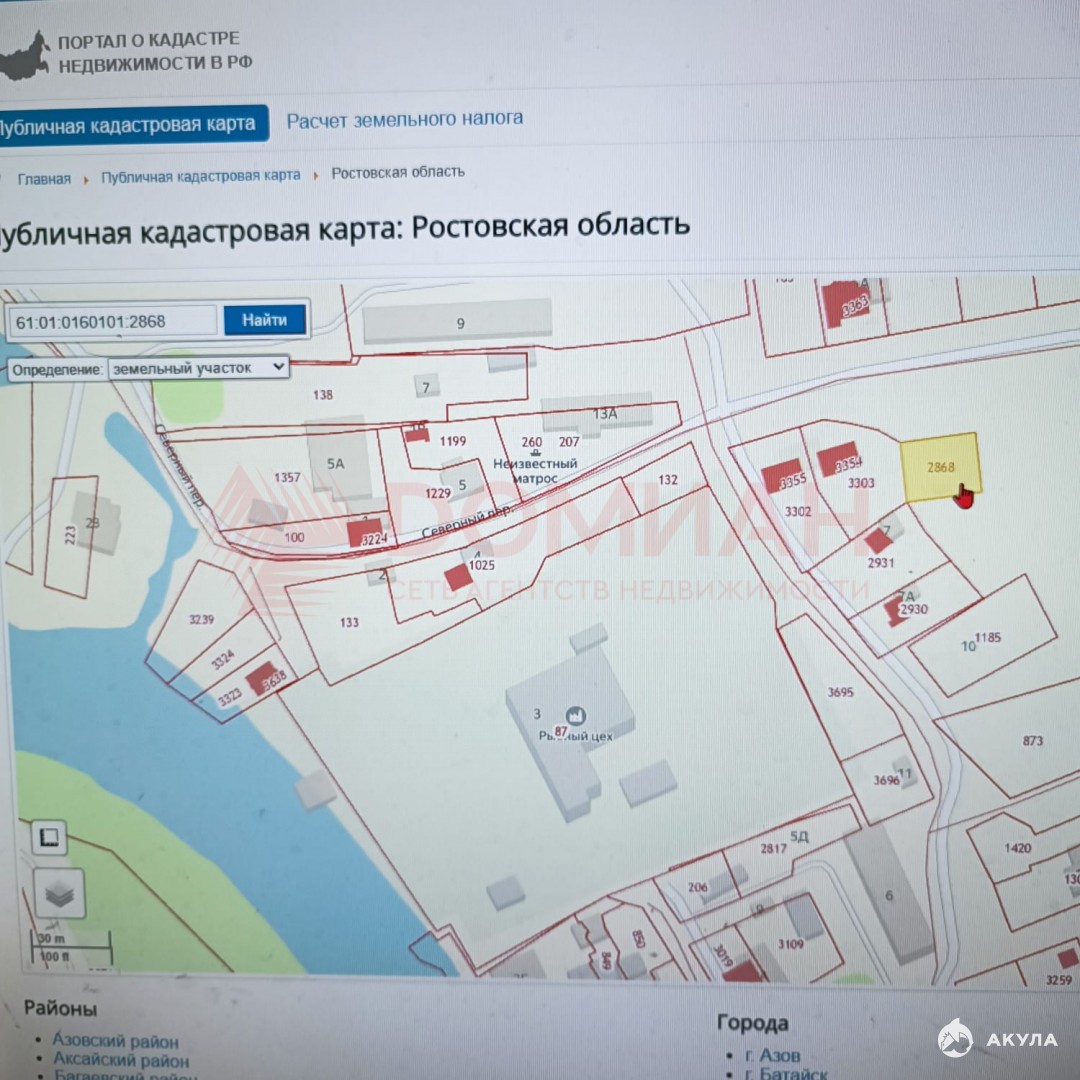 Кадастровый номер 61:01:0160101:2868