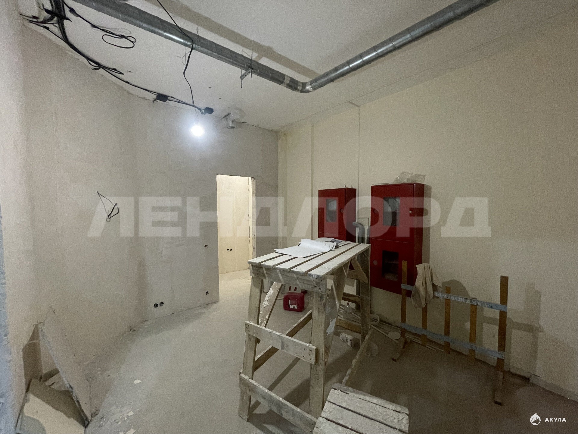 Общая площадь 109 квадратных метра, помещение имеет две входные группы, произведены все черновые работы:стяжка, штукатурка, разводка электрики, водоснабжения и водоотведение, установлена вытяжка.