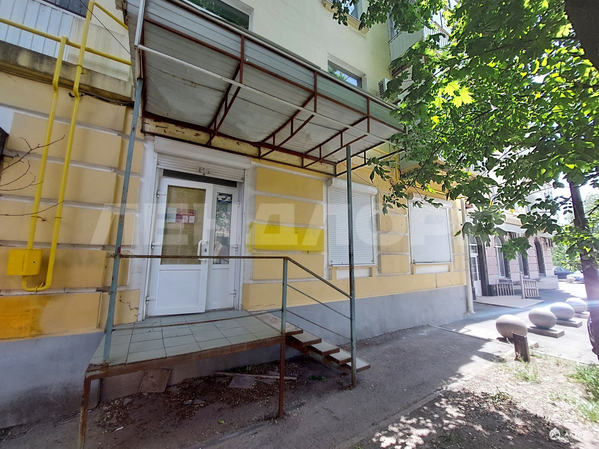 Отдельный вход , имеется металлический каркас под вывеску.