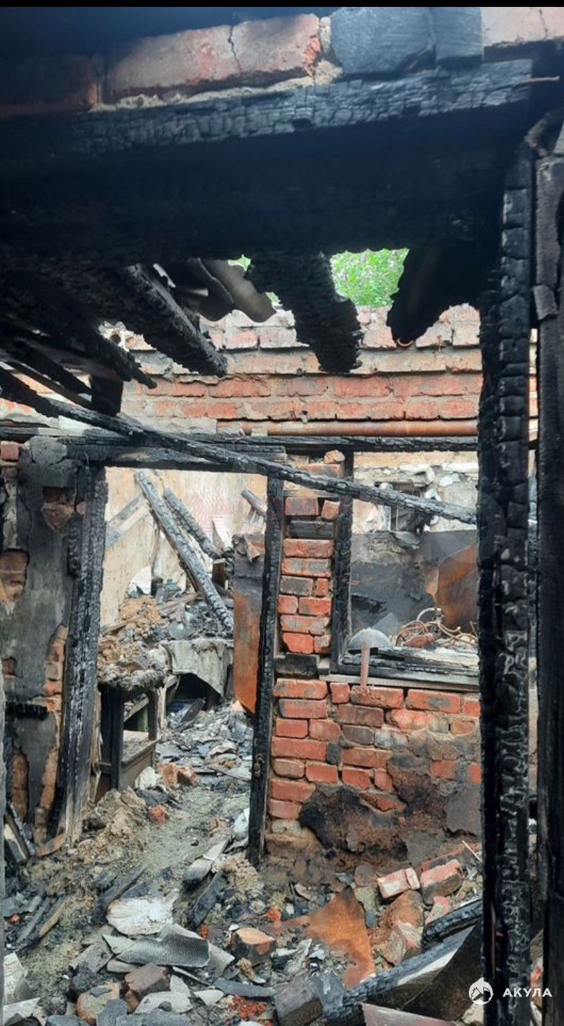 Уцелело жилое помещение, пристройка и хозяйственные постройки требуют капитального ремонта или под снос. Всё коммуникации ( свет, газ, вода канализация )есть в уцелевшем жилом строении.