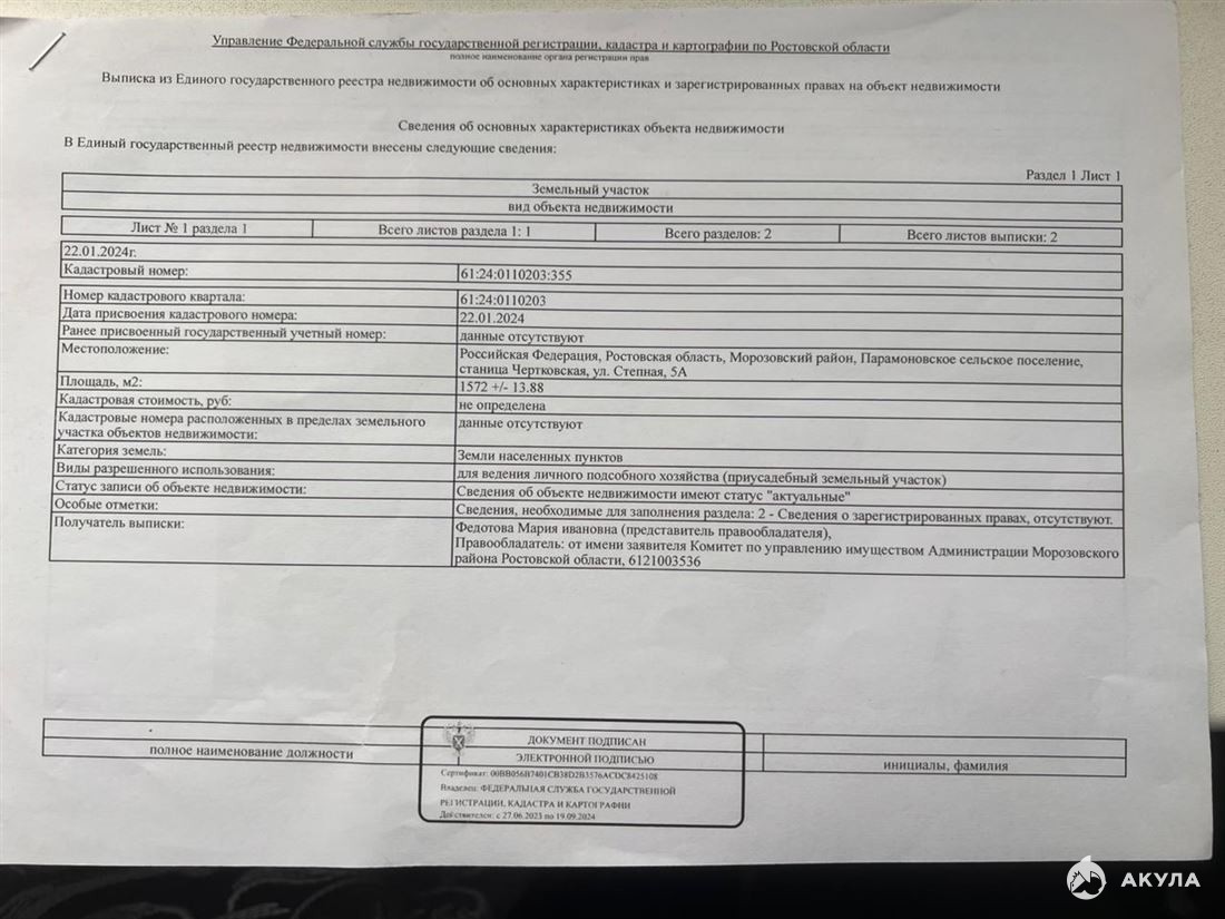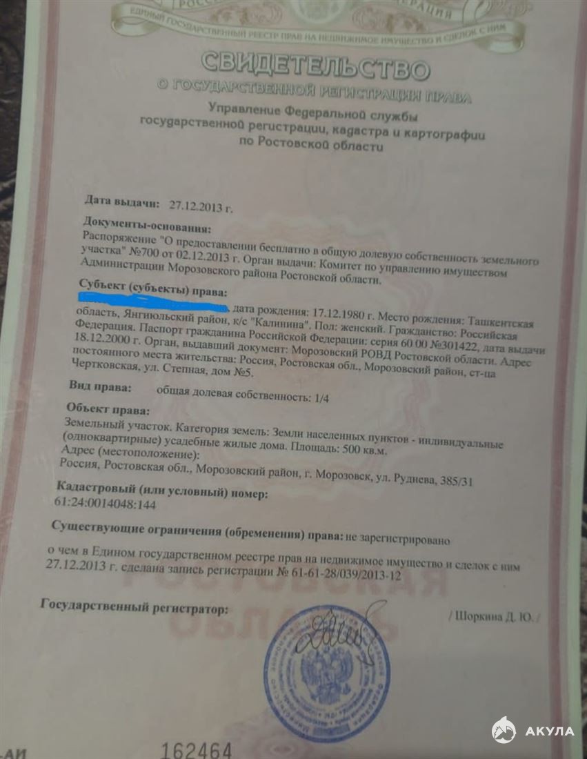 ID в ИМЛС: 19821120 Продам Участок площадью 5 сот. ( г Морозовск ул Руднева) (Земли населенных пунктов / Дачное строительство).