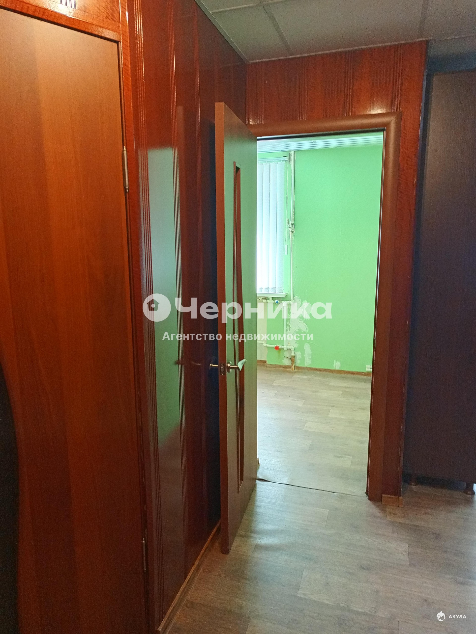 Жилая комната и коридор отделаны МДФ, потолки подвесные, остаётся шкаф-купе.
