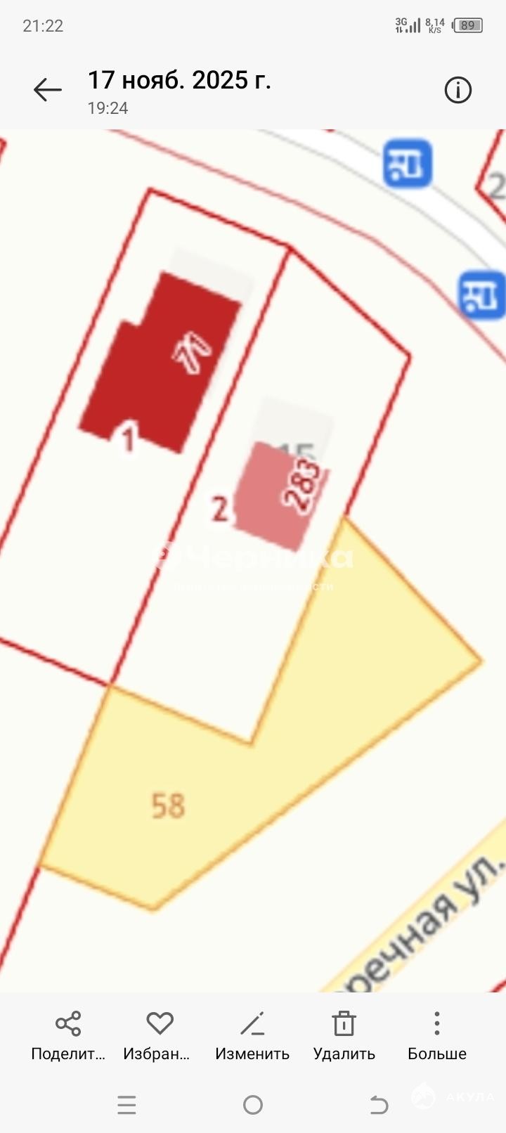 - Площадь участка