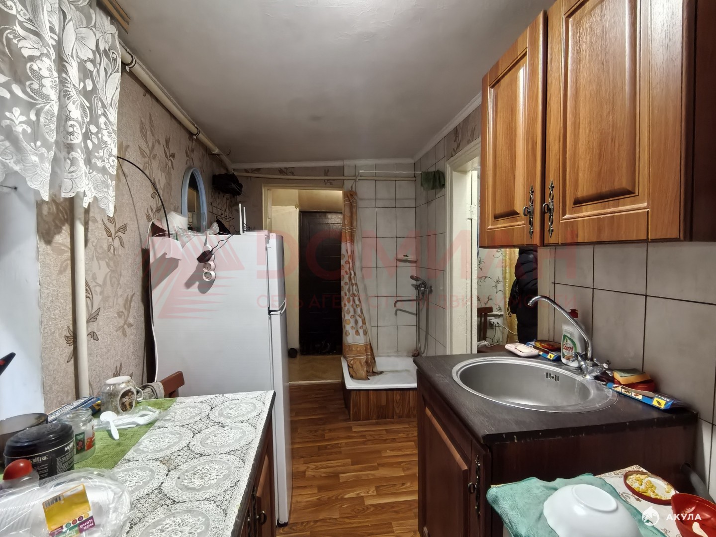 Состояние хорошее, жилое. Есть туалет и душ. Окна в тихий двор.