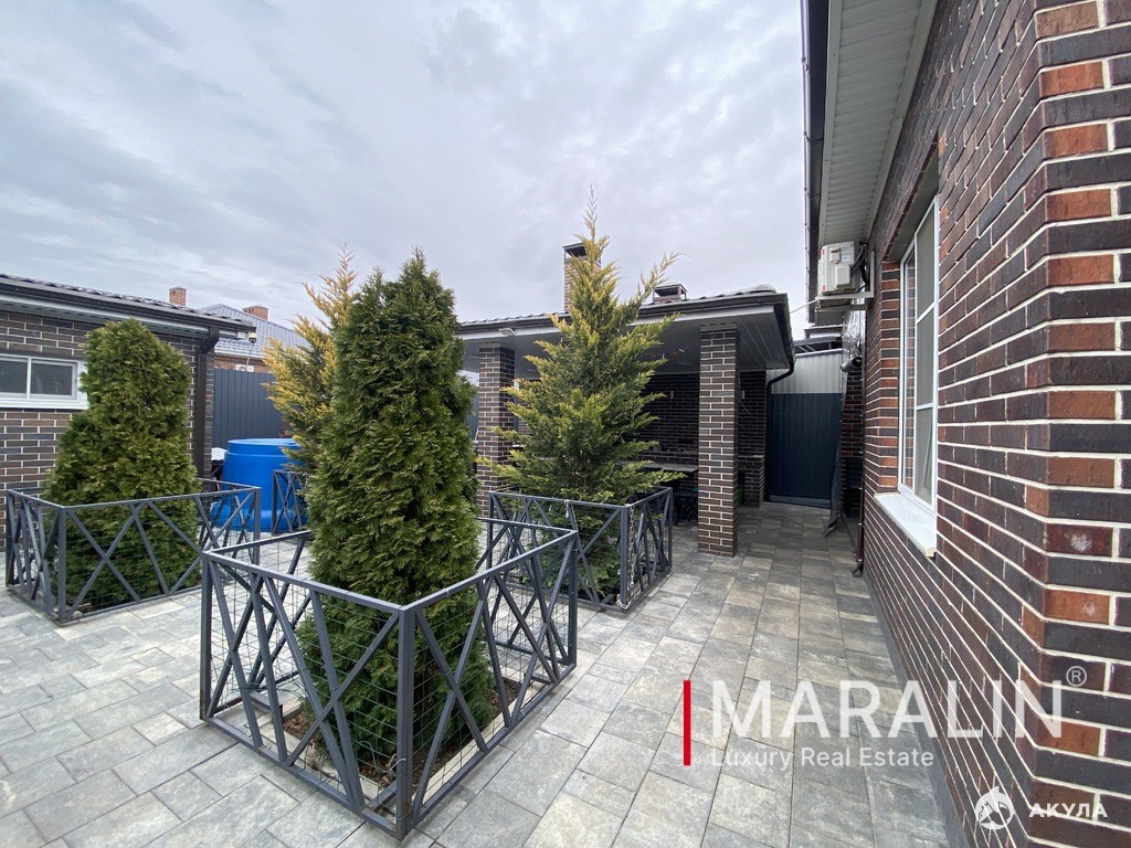 По этому объекту вам ответит Федоренко Инна.Ближайший пригород Ростова-на-Дону. Продам уютный дом, расположенный в коттеджном поселке "Ваш Выбор", х. Ленинакан, примыкает к микрорайону Суворовский. Одноэтажный дом общей площадью 127, 2 м2. Материал стен — кирпич. Размер земельного участка 430 м2. Все строилось для себя с использованием качественных и дорогостоящих материалов. Дом новый, 2020 года постройки, с современным ремонтом. Планировка: прихожая, 3 спальни, просторная кухня-гостиная, терраса, ванная комната, санузел. На улице летняя беседка с печью, мангалом и рабочей кухонной зоной(мангал не дымит). Терраса летняя, под террасой подвал. Беседка со всеми коммуникациями - летом одна из самых уютных зон для отдыха и посиделок с родными и друзьями. Двор вымощен плиткой, распланирован, озеленения хвойных пород, а так же установлен вольер для собаки, хоз.блок для инвентаря, уличный санузел и душ. Участок ровный, прямоугольной формы, практически полностью в тротуарной плитке, установлен красивый и современный навес , место для парковки 4 автомобилей. Дорога широкая , асфальтированый подъезд. Забор качественный и надёжный, полностью на ленточном фундаменте. Хорошая локация: до остановки автотранспорта 200 метров, рядом магазины, детский садик и школа в мкр Суворовском. Отличные доброжелательные соседи. Все для комфортной и счастливой жизни. Все фото реальные. Подробно об объекте на сайте компании на Маралин Ру. Узнайте сколько стоит Ваша недвижимость! Бесплатная консультация и выезд специалиста.