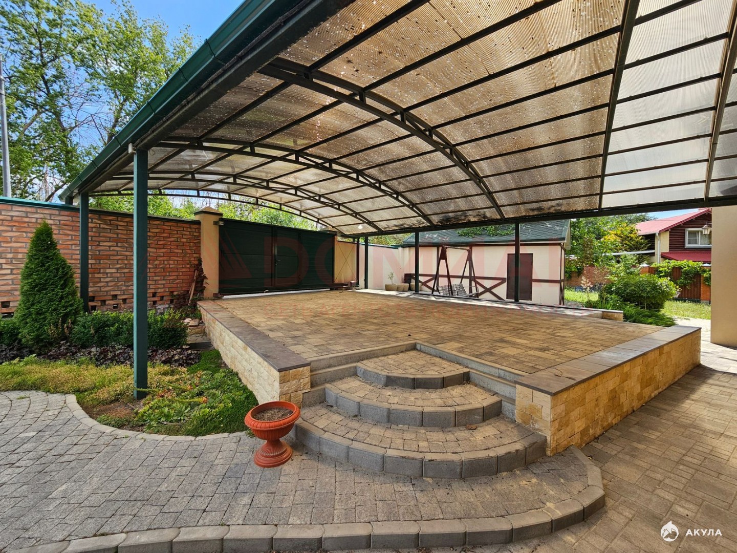 • Крытый двор, выложенный плиткой – удобно и стильно.