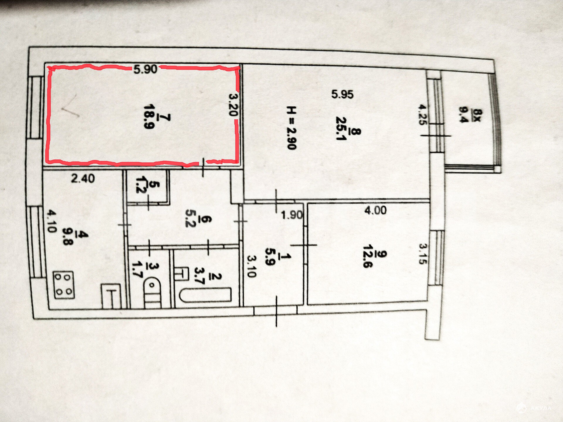 - 18.90 м²