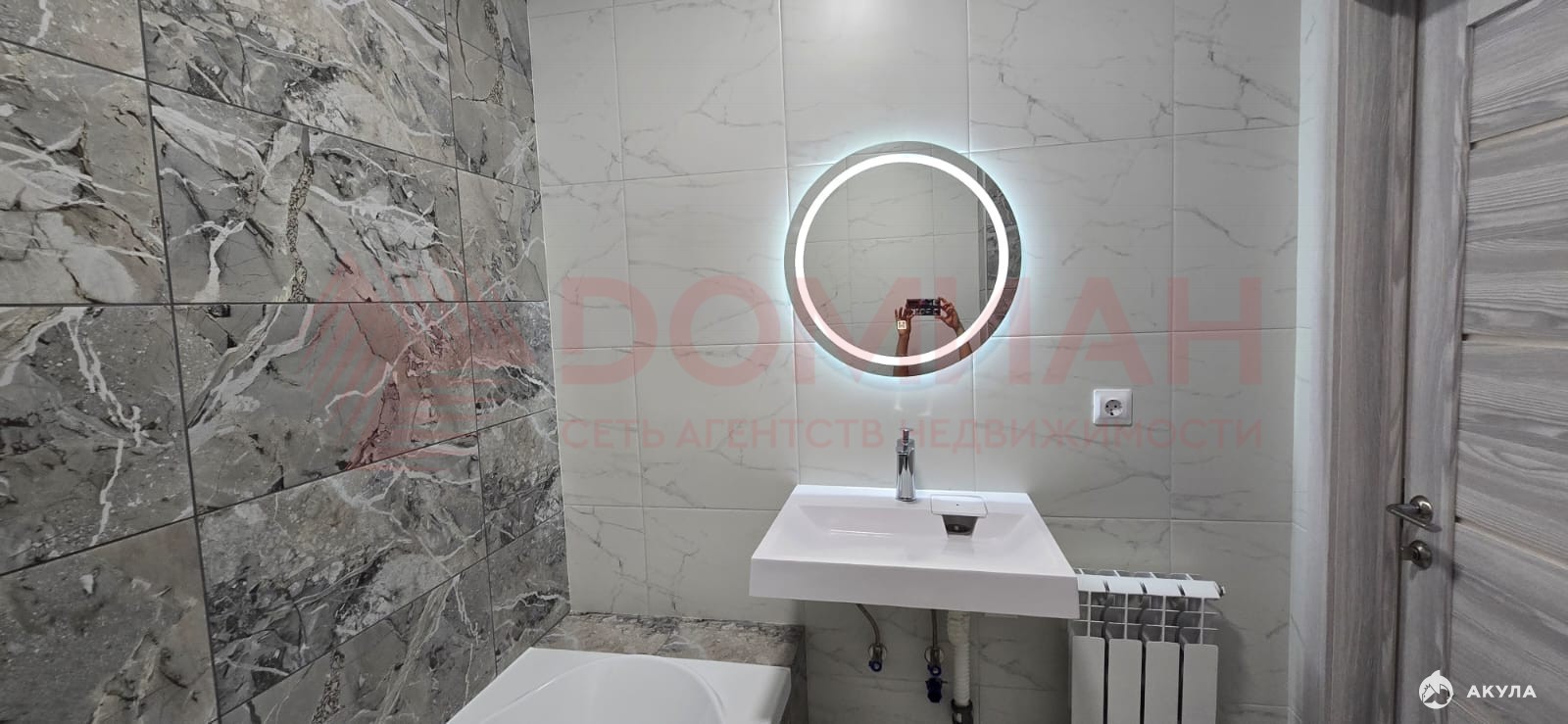 В санузле выложена премиальная плиточка, современная сантехника.