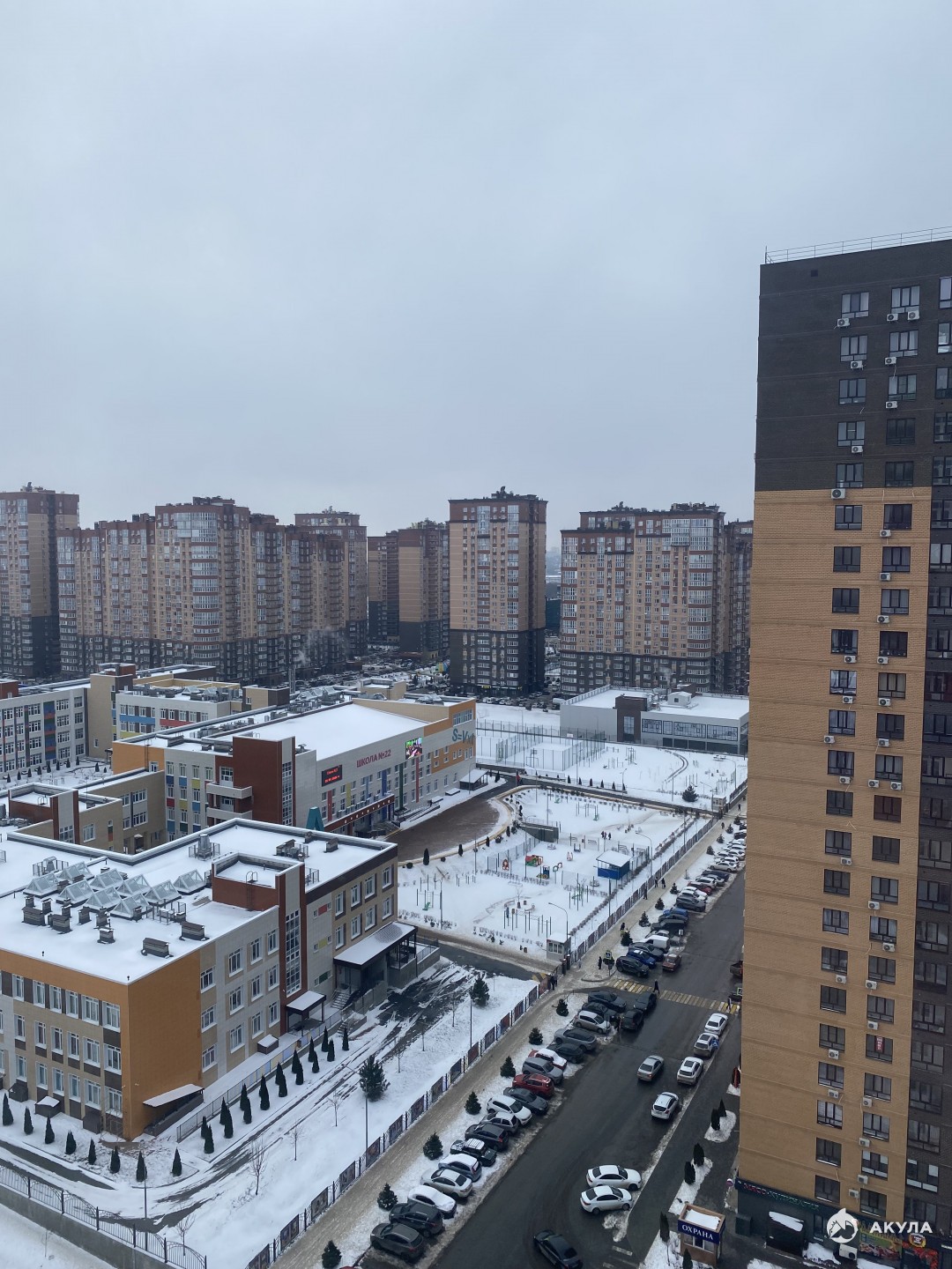 Школа № 22 -находится в 50 метрах , детский сад- в 20 метрах .