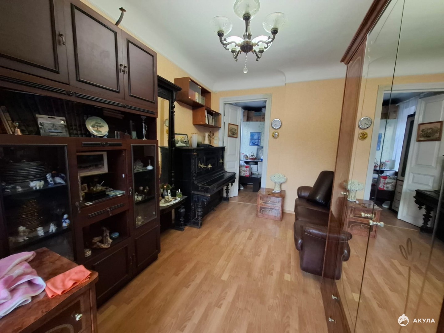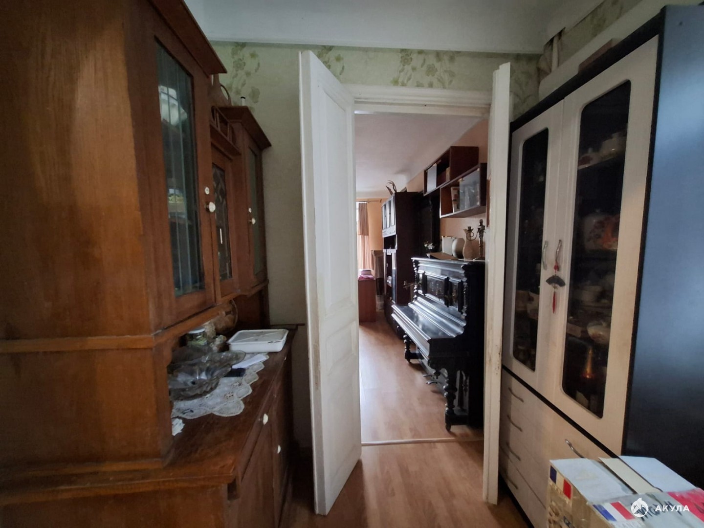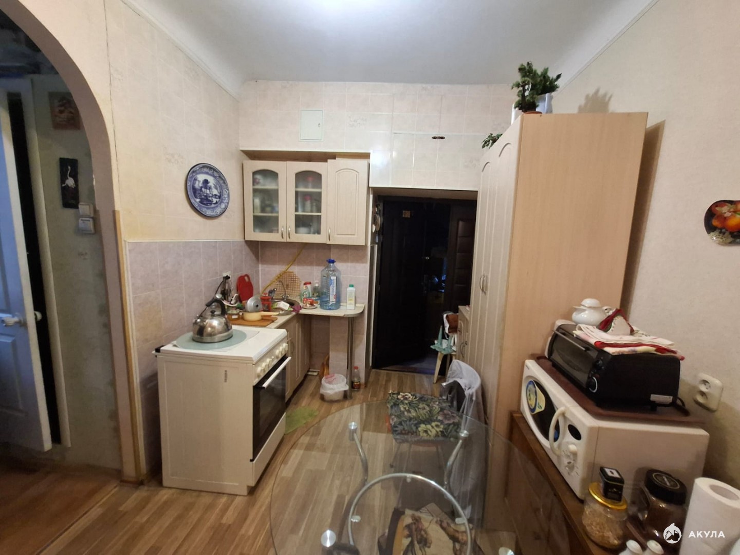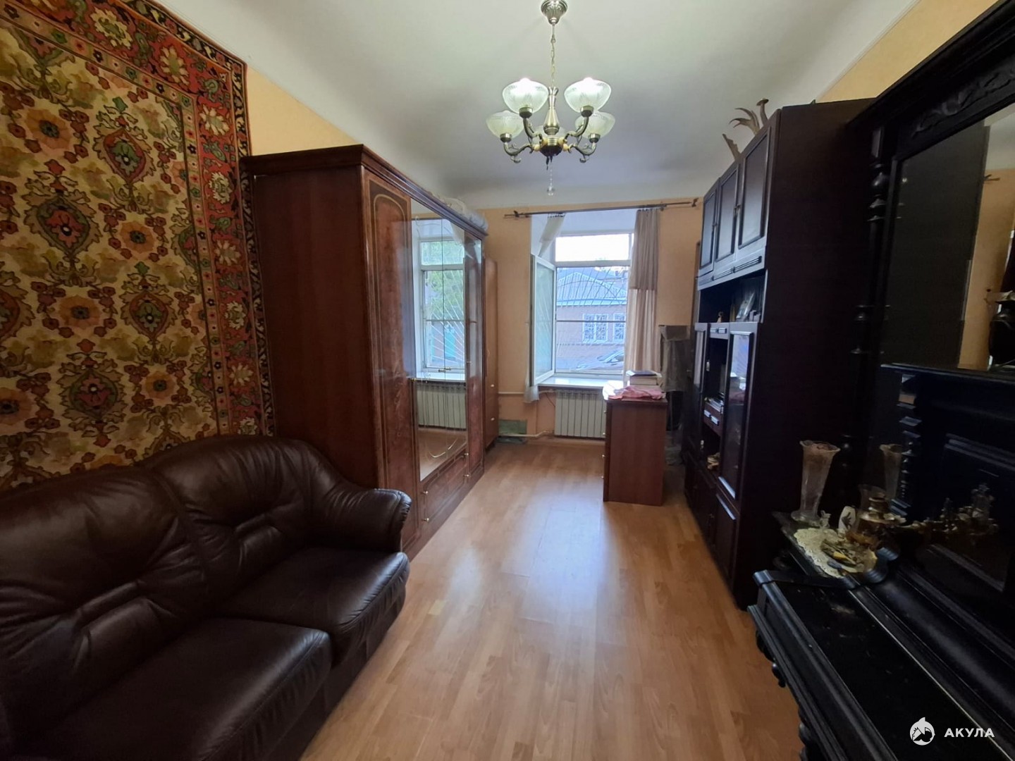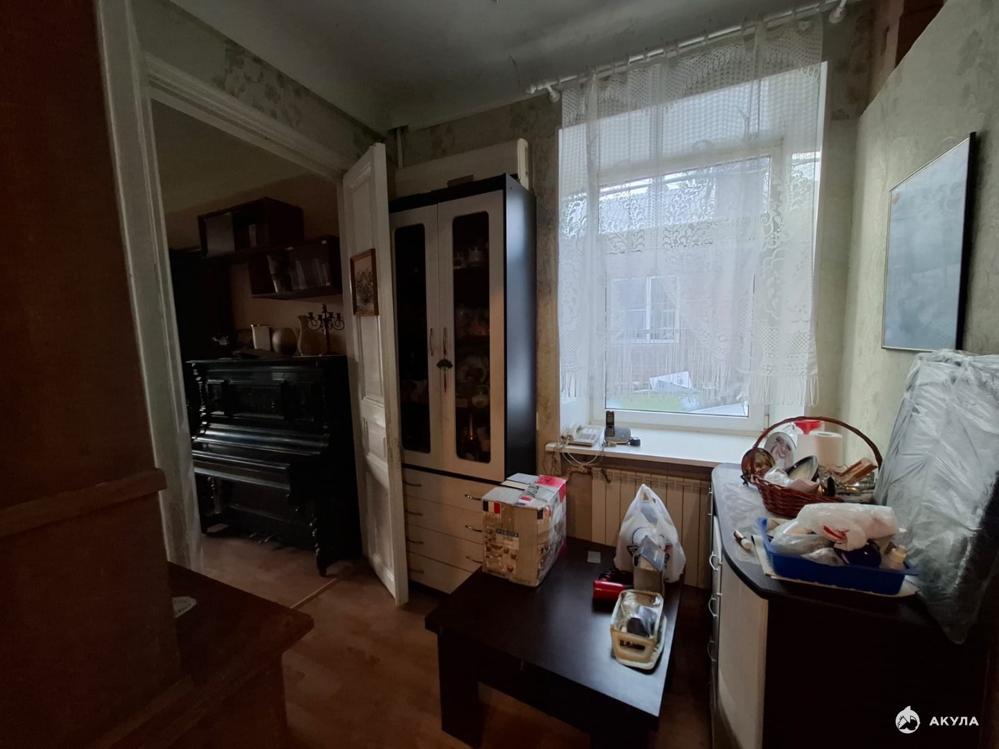 В крепком кирпичном доме на первом высоком этаже находится квартира нестандартной планировки: просторная кухня-столовая, совмещенный санузел и светлая комната-14, 5кв.м.