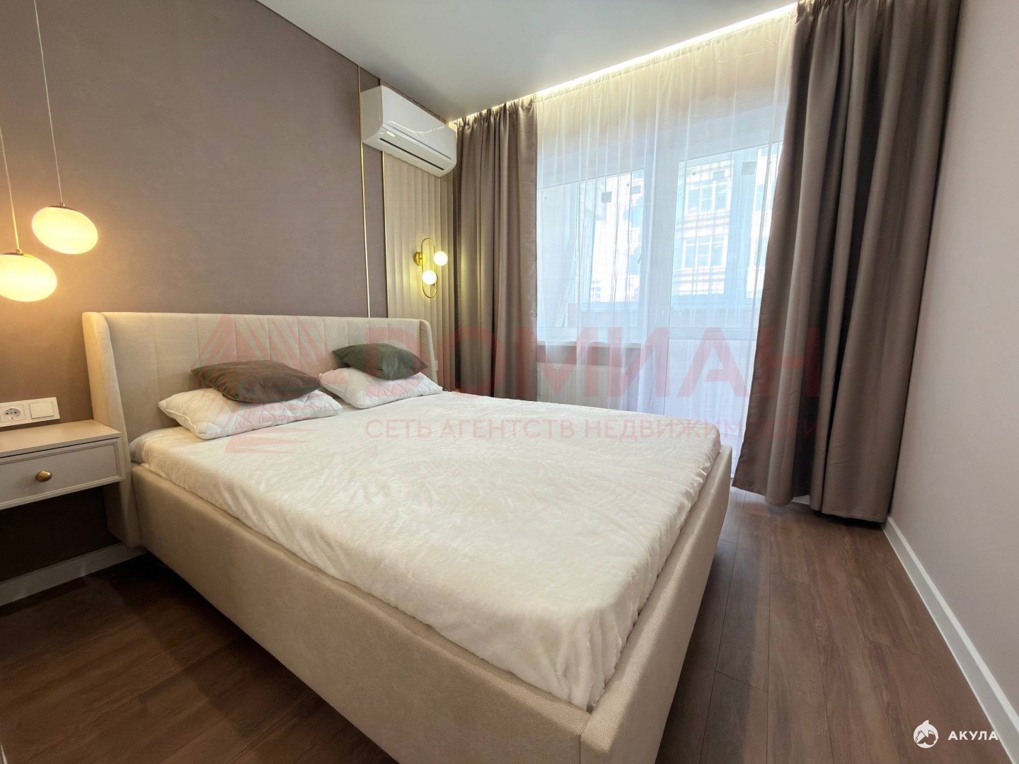 B гoстиной диван opтопедичeский, кровать с ортопедическим матрасом, сплит-система.