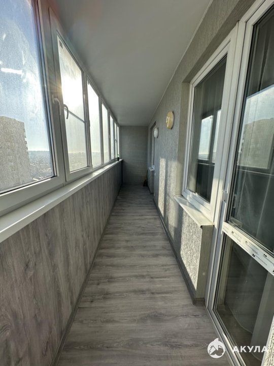 Ленточный балкон с выходом из кухни и из комнаты.