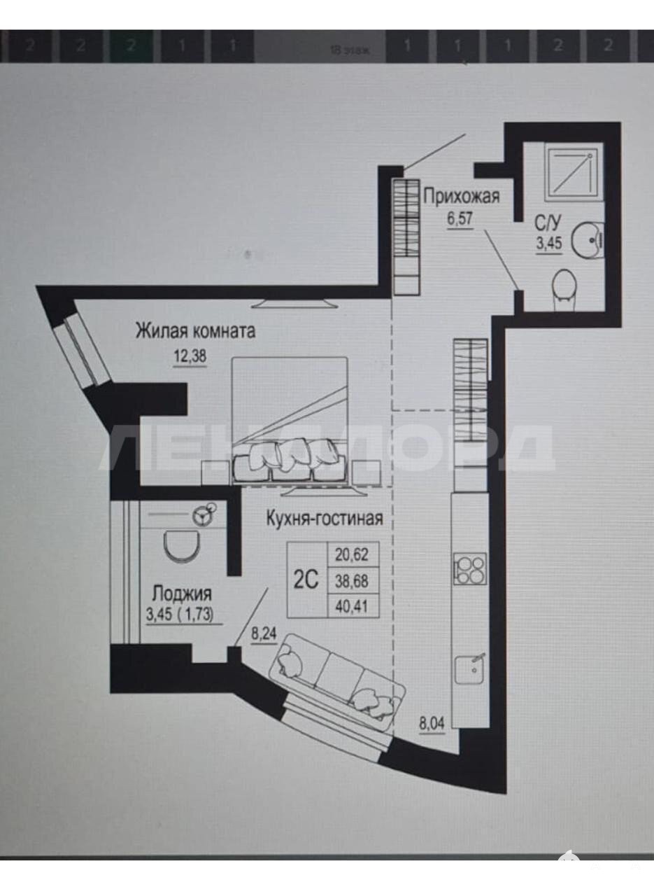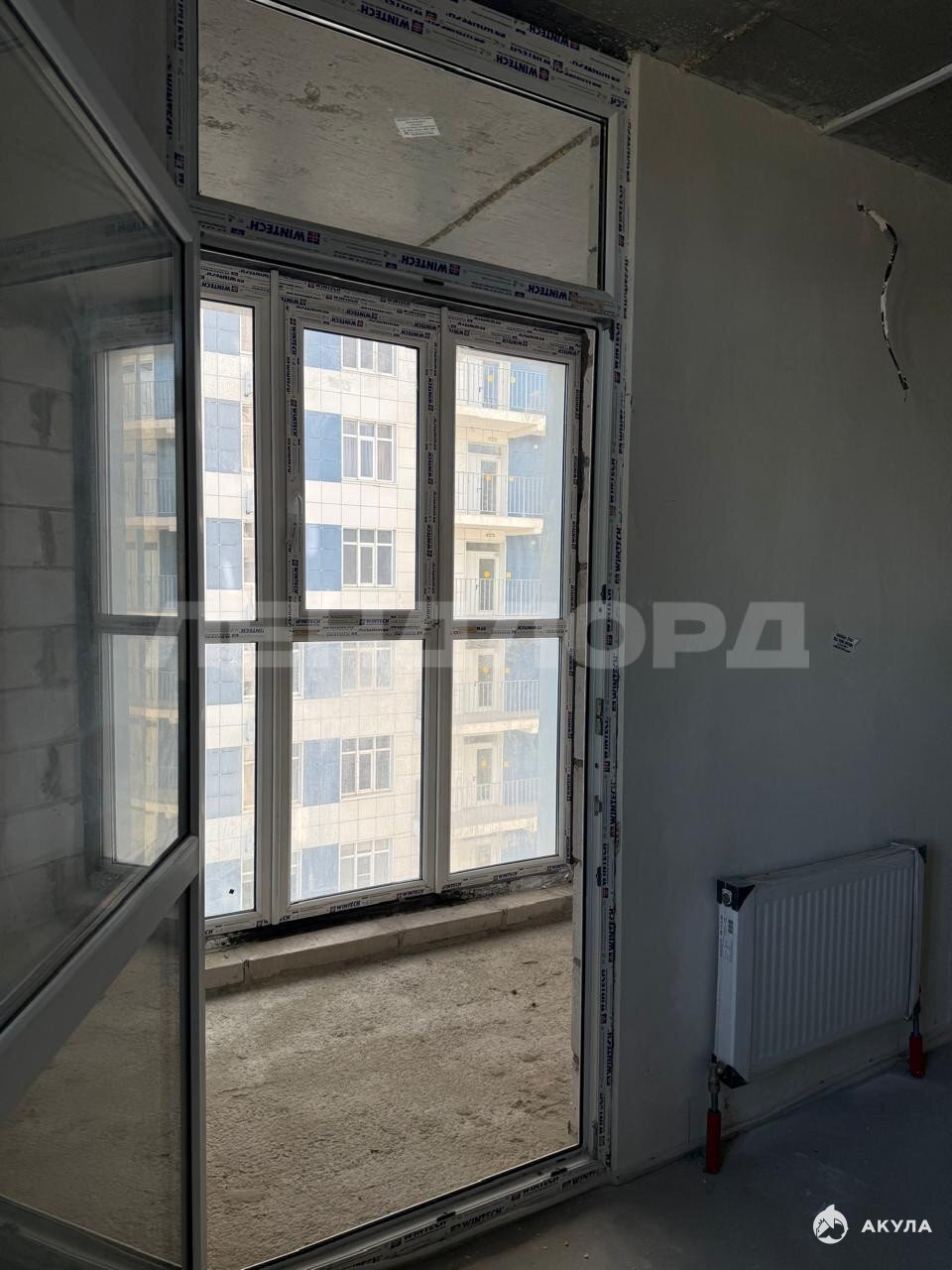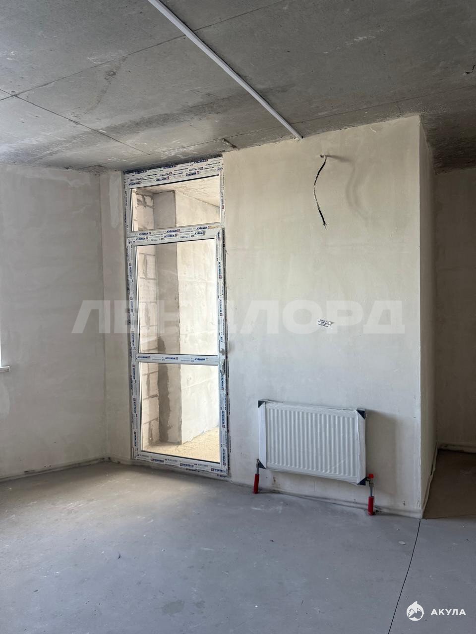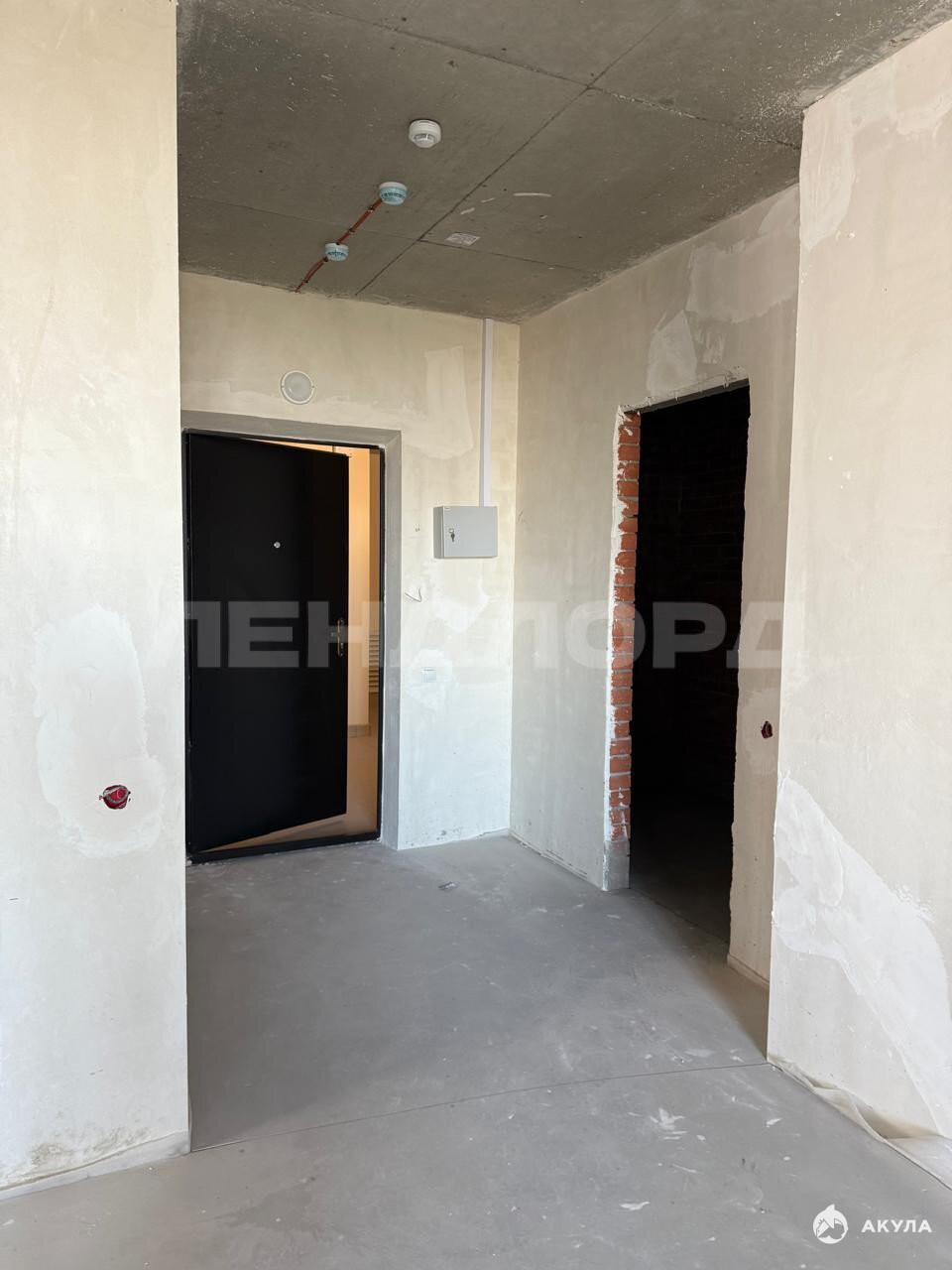 Планировка евро-два в предчистовой отделке: на полу выполнена cтяжка, штукатуpкa стен,
