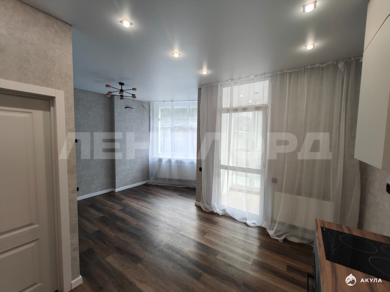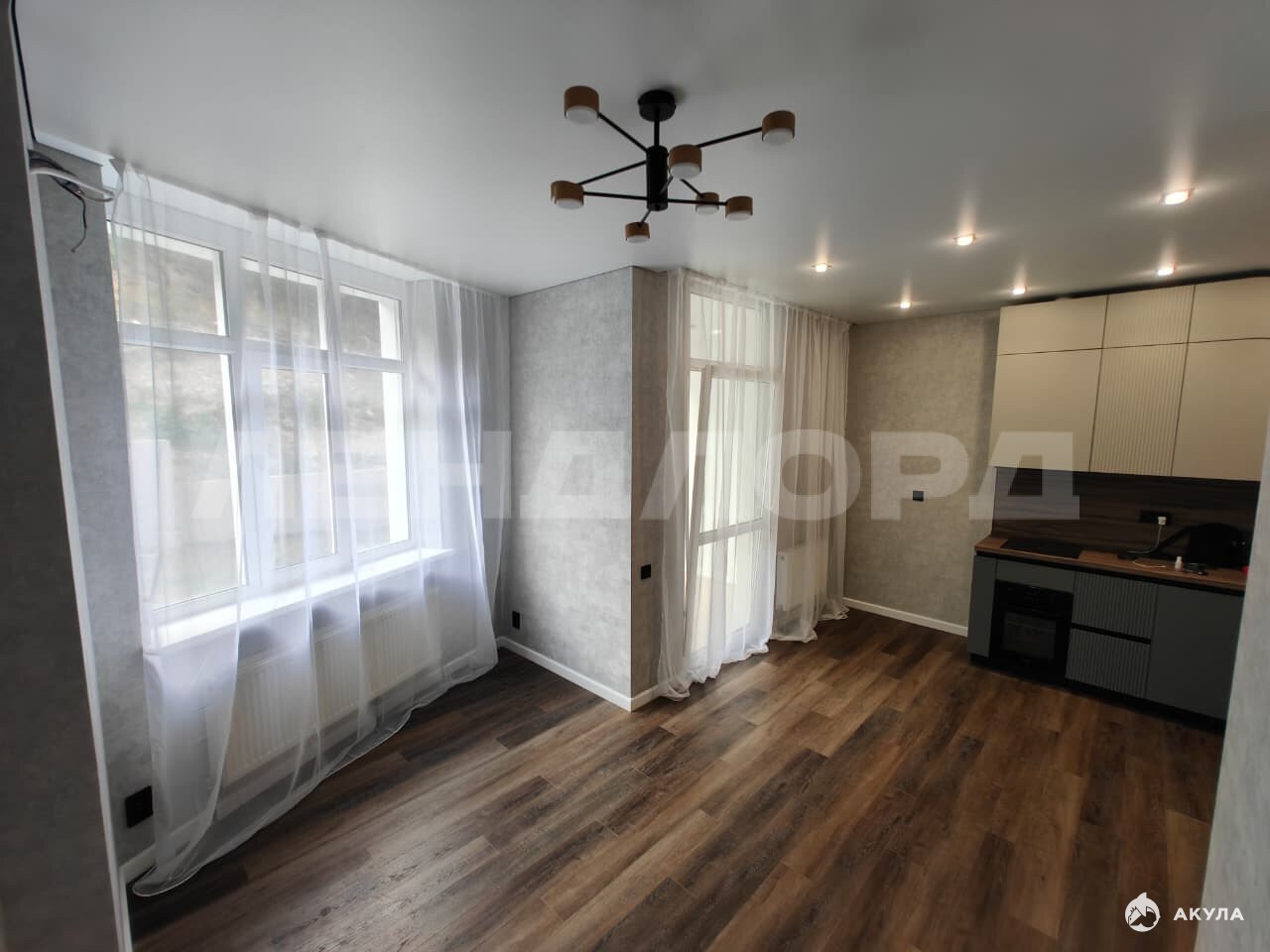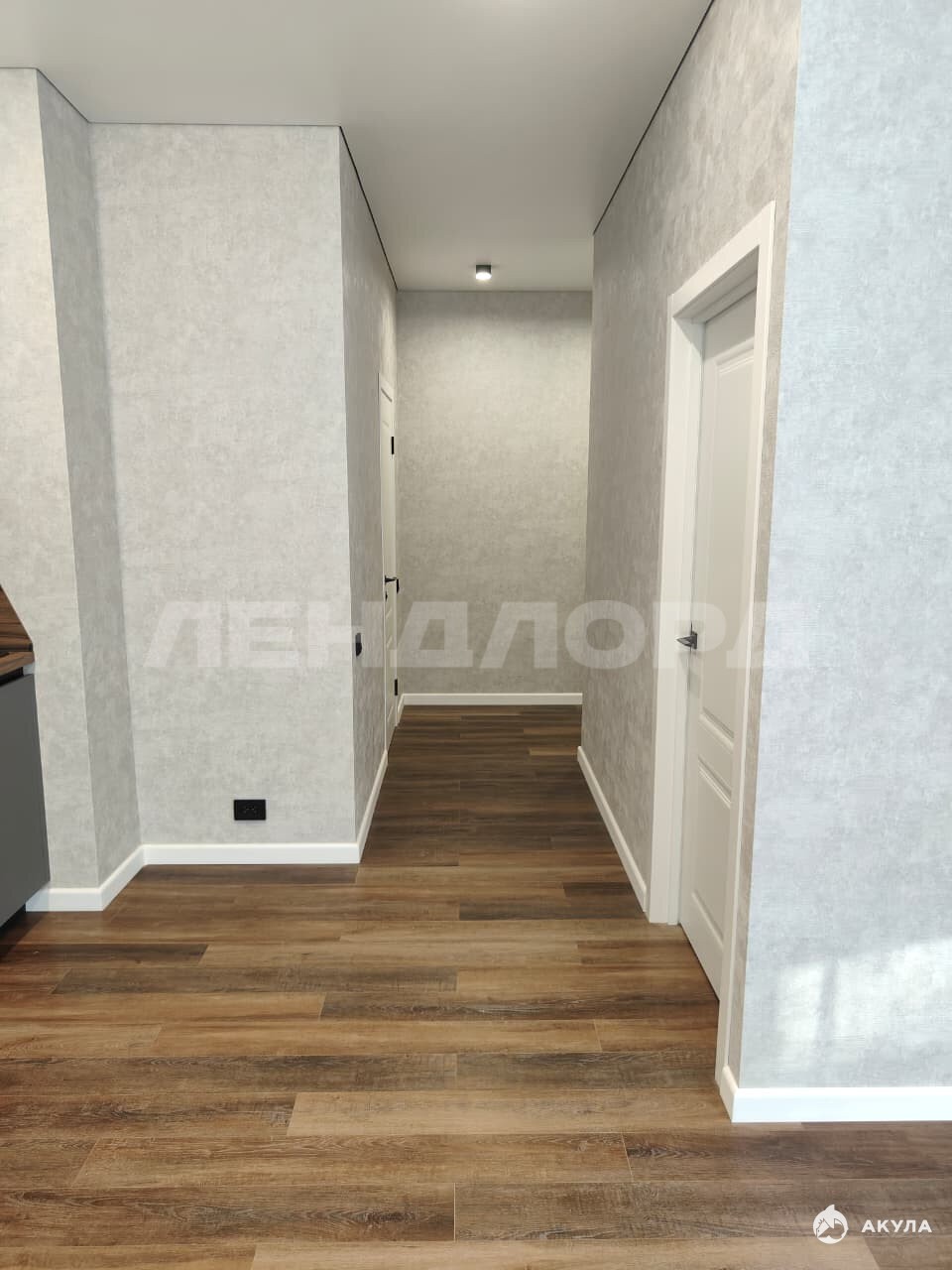 пол из кварцвинила, современные потолки с теневым профилем и дюрополимерные плинтуса.
