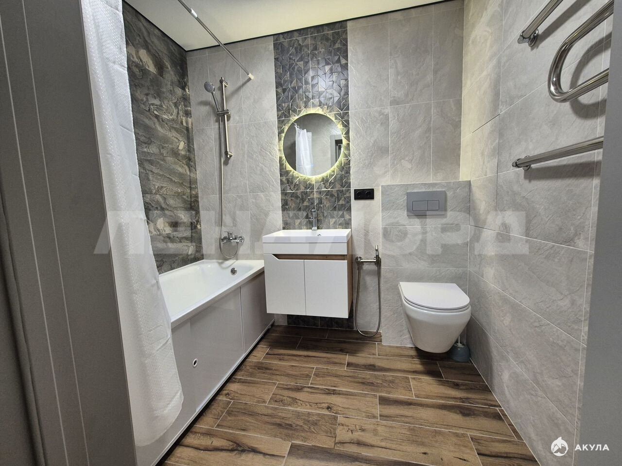 Ванная комната с качественной сантехникой и стильной плиткой.