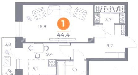 - 44 м²