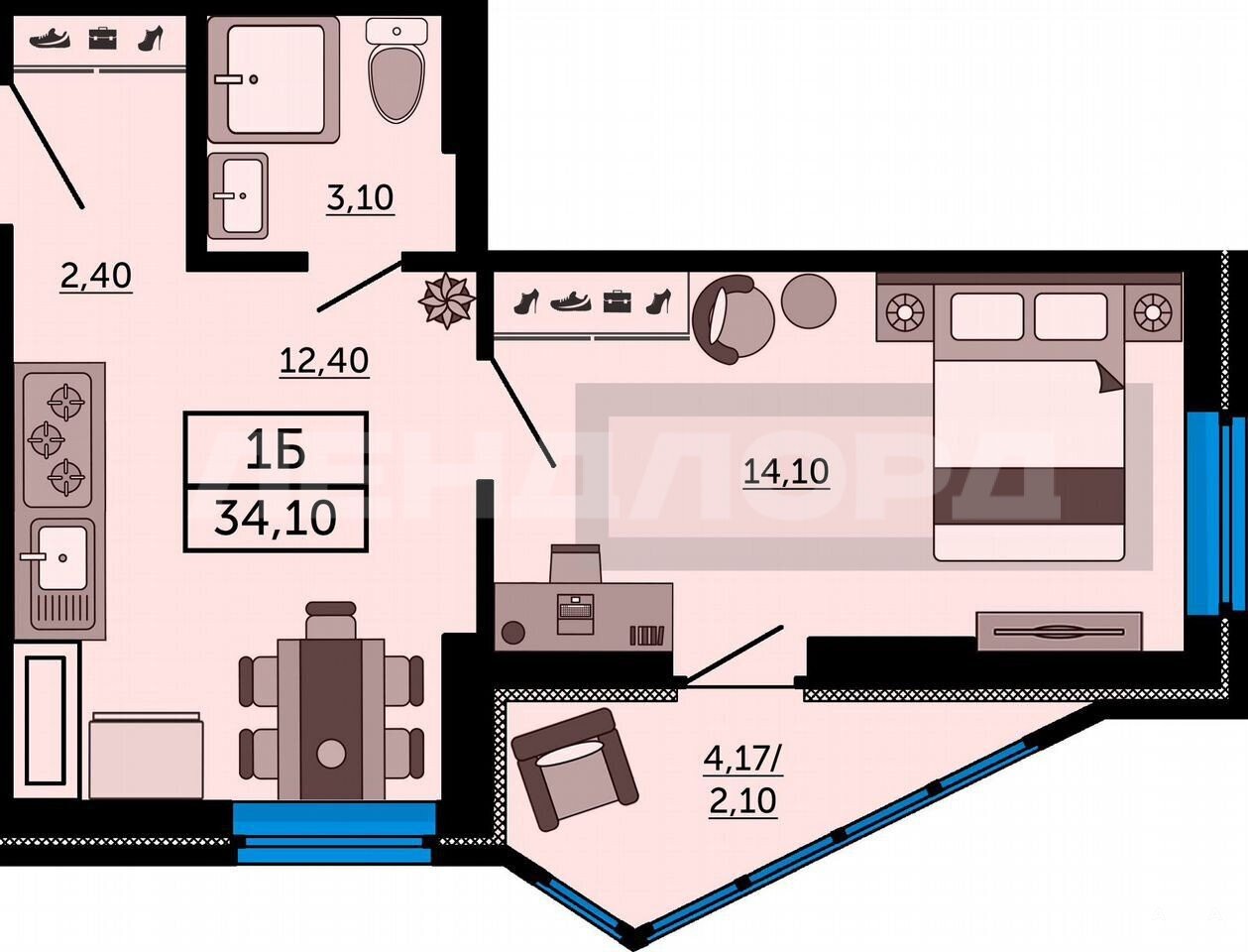 - 34 м²