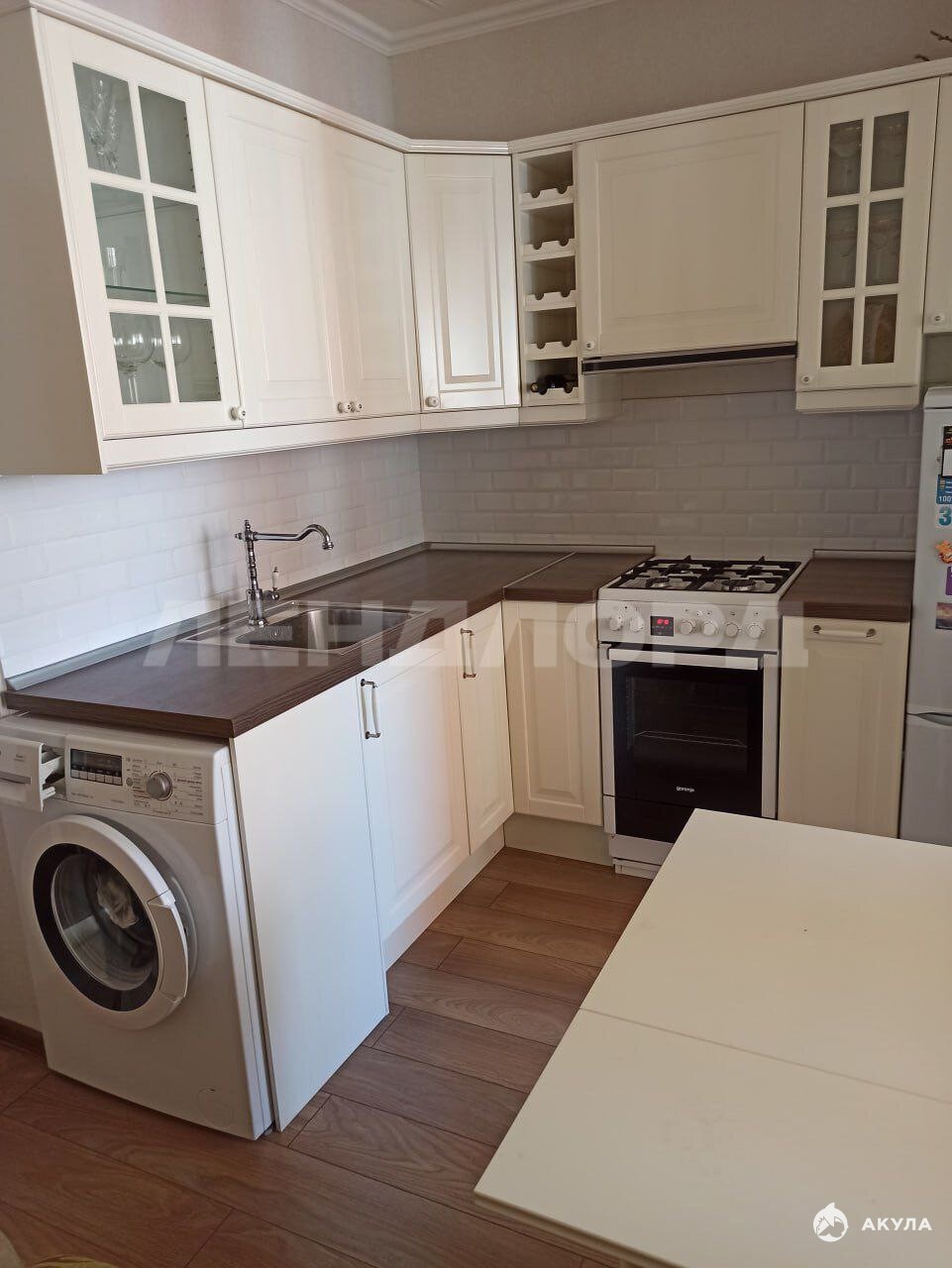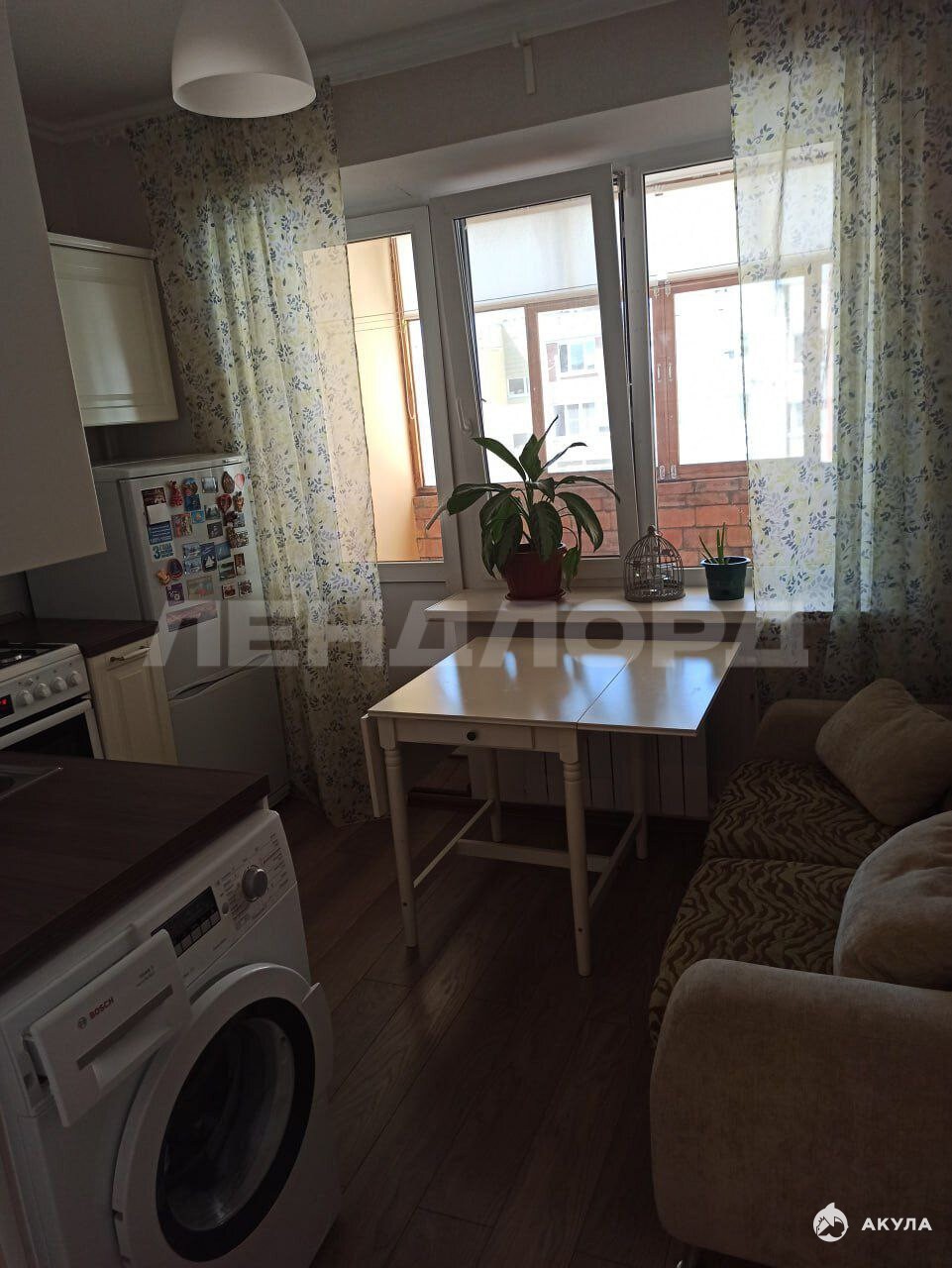 Квартира в отличном состоянии, остается мебель и техника. Хорошая светлая кухня, с обеденной зоной и диваном. Спальня-гостиная с огромным коричневым диваном и телевизором. Много места для хранения, большой шкаф. Небольшая ванная комната в ярких оттенках и светлой хорошей ванной. Небольшой коридор с большим шкафом для верхней одежды. Огромная лоджия с большими окнами.