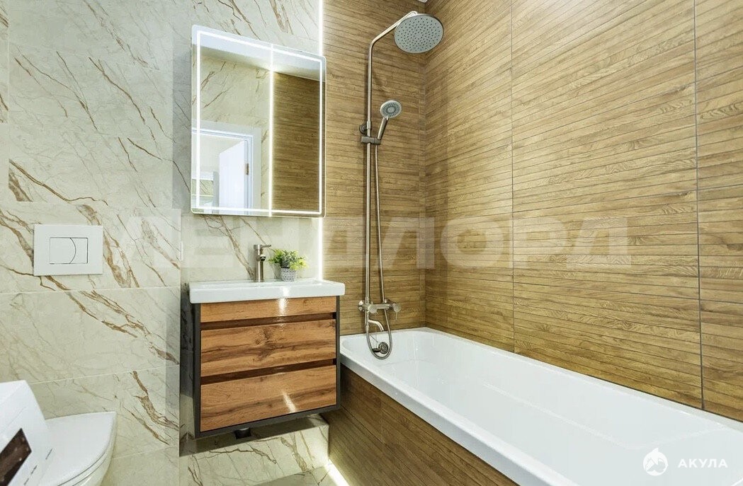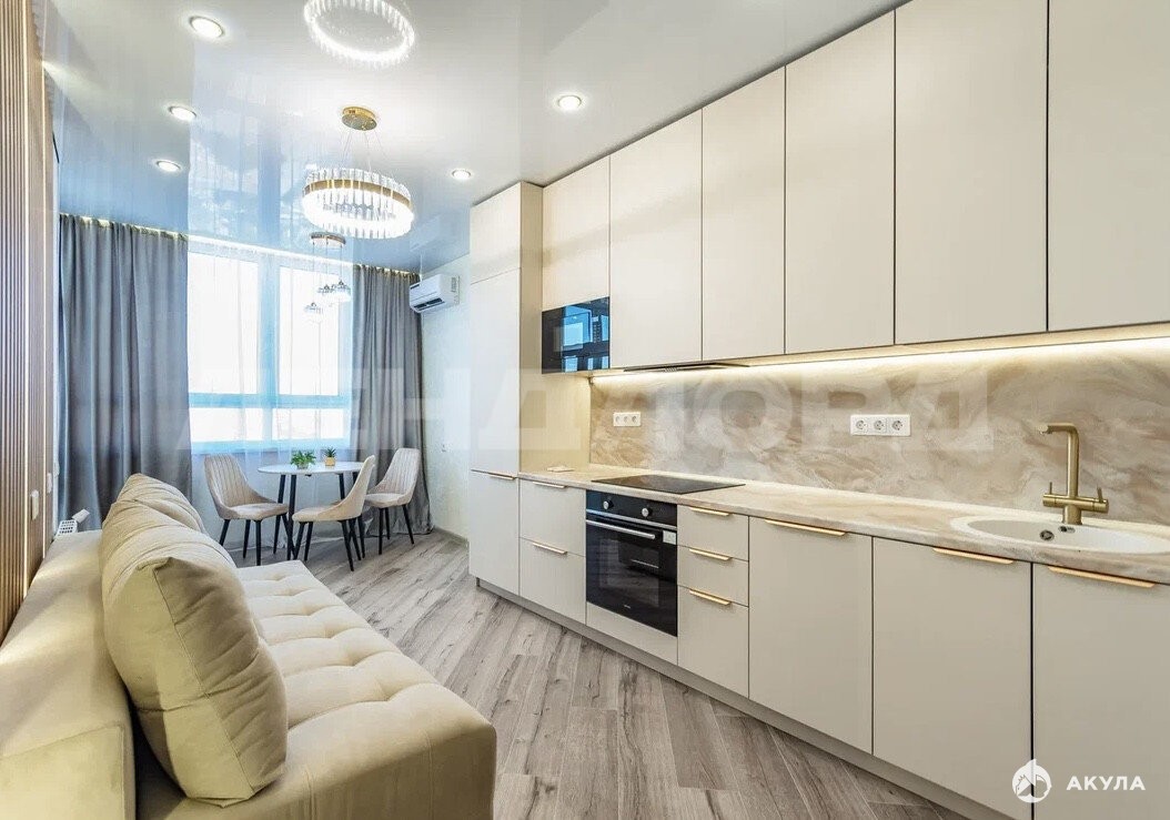 Светлые комнаты, качественные материалы отделки, просторная кухня-гостиная и отдельная спальня.