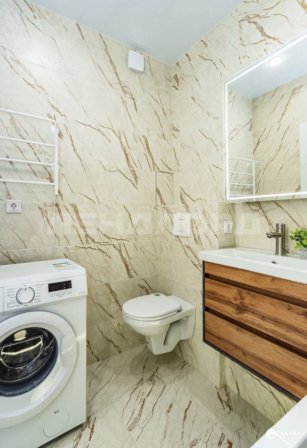 Квартира оснащена всем необходимым для жизни от мебели до техники: холодильник, посудомоечная машина, микроволновая печь, стиральная машина, кондиционер.