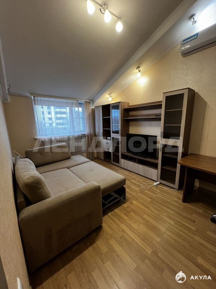 Остается : кухонная мебель и техника, мебель в жилой комнате, кондиционер, холодильник.