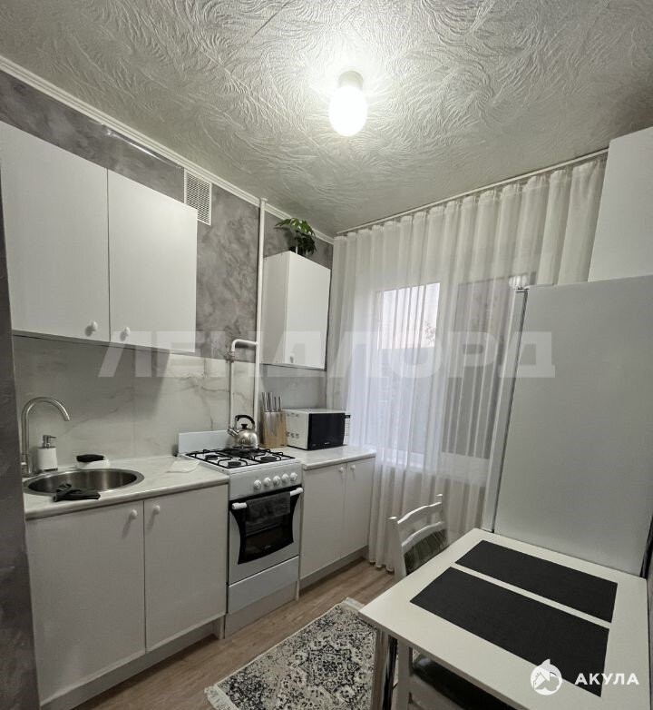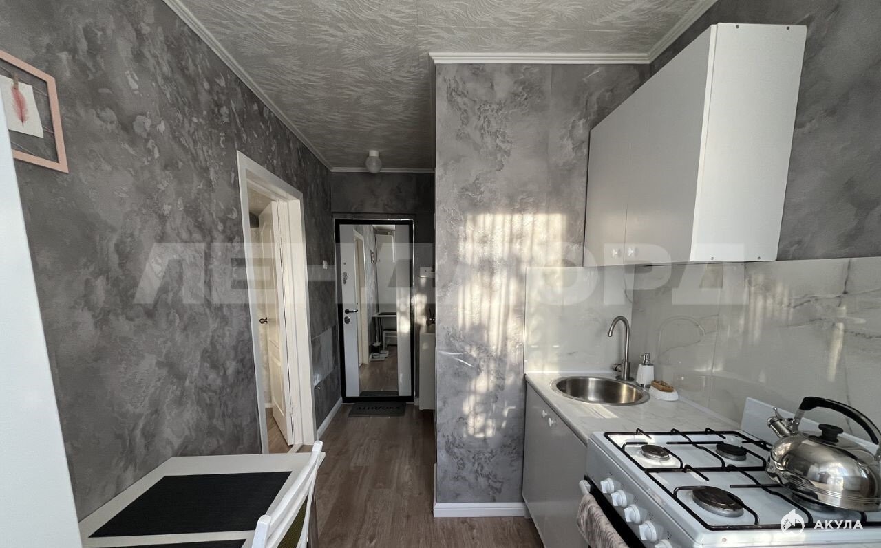 Комната очень светлая. Ремонт делался для себя. Кухонный фартук из хорошего керамогранита. Пластиковые окна. На полу ламинат.