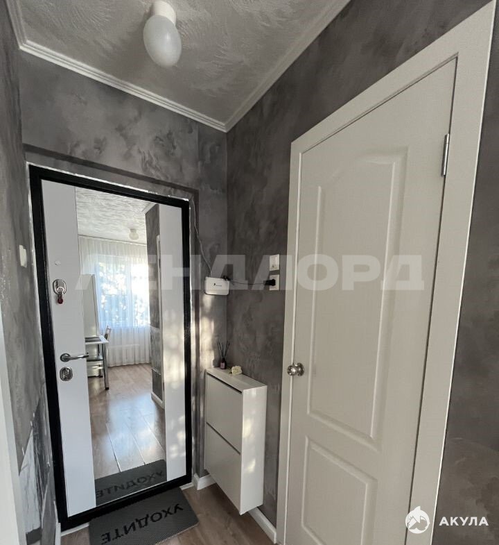 Хорошая входная дверь с зеркалом в пол. Со стороны подъезда детский сад напротив. С балкона видно новую школу.