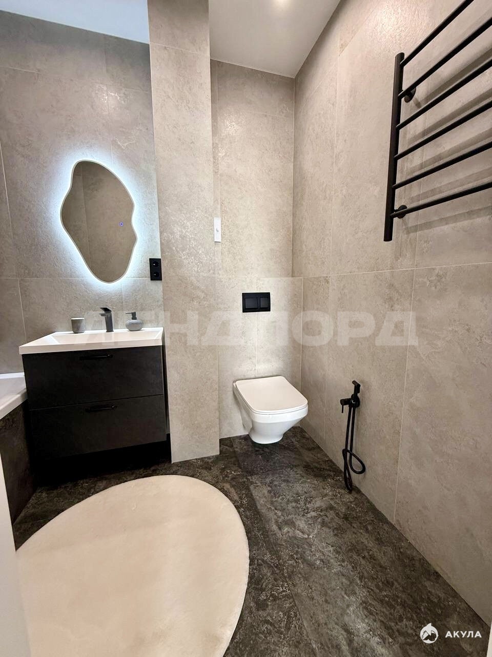 В квартире выполнен дизайнерский ремонт, вся мебель и бытовая техника новые, остаются следующему владельцу. Санузел отделан керамогранитом. Просторная гардеробная. Из окон 23 этажа открывается потрясающий вид на город.