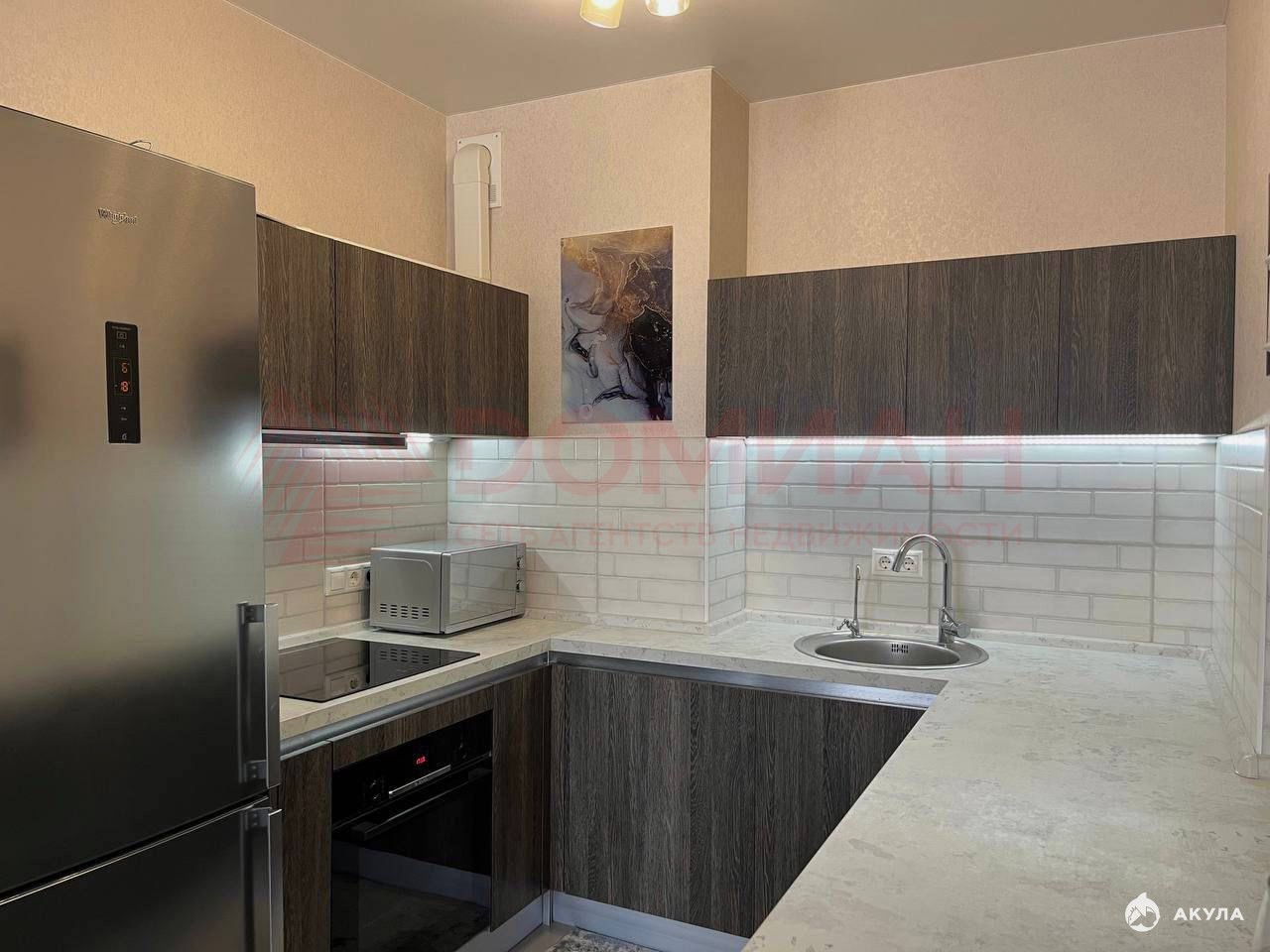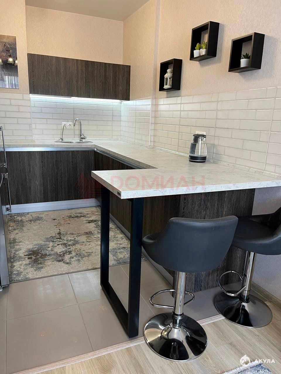 В квартире выполнен качественный ремонт. В кухне-гостиной установлена сплит-система, диван, качественный гарнитур укомплектованный всей необходимой мебелью и бытовой техникой. Выход на балкон из спальни, установлено освещение. В спальне установлен шкаф, двух-спальная кровать. Ванная комната совмещенная с с/у выложенная керамогранитом. В квартире напольное покрытие ламинат, в прихожей и в кухонной зоне керамогранит. Потолки натяжные. Дорогие обои. Качественная сантехника. Проводка качественная.