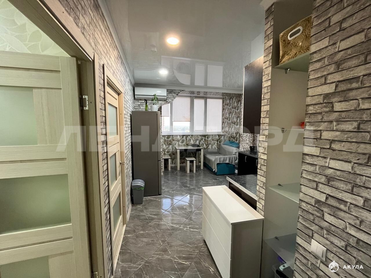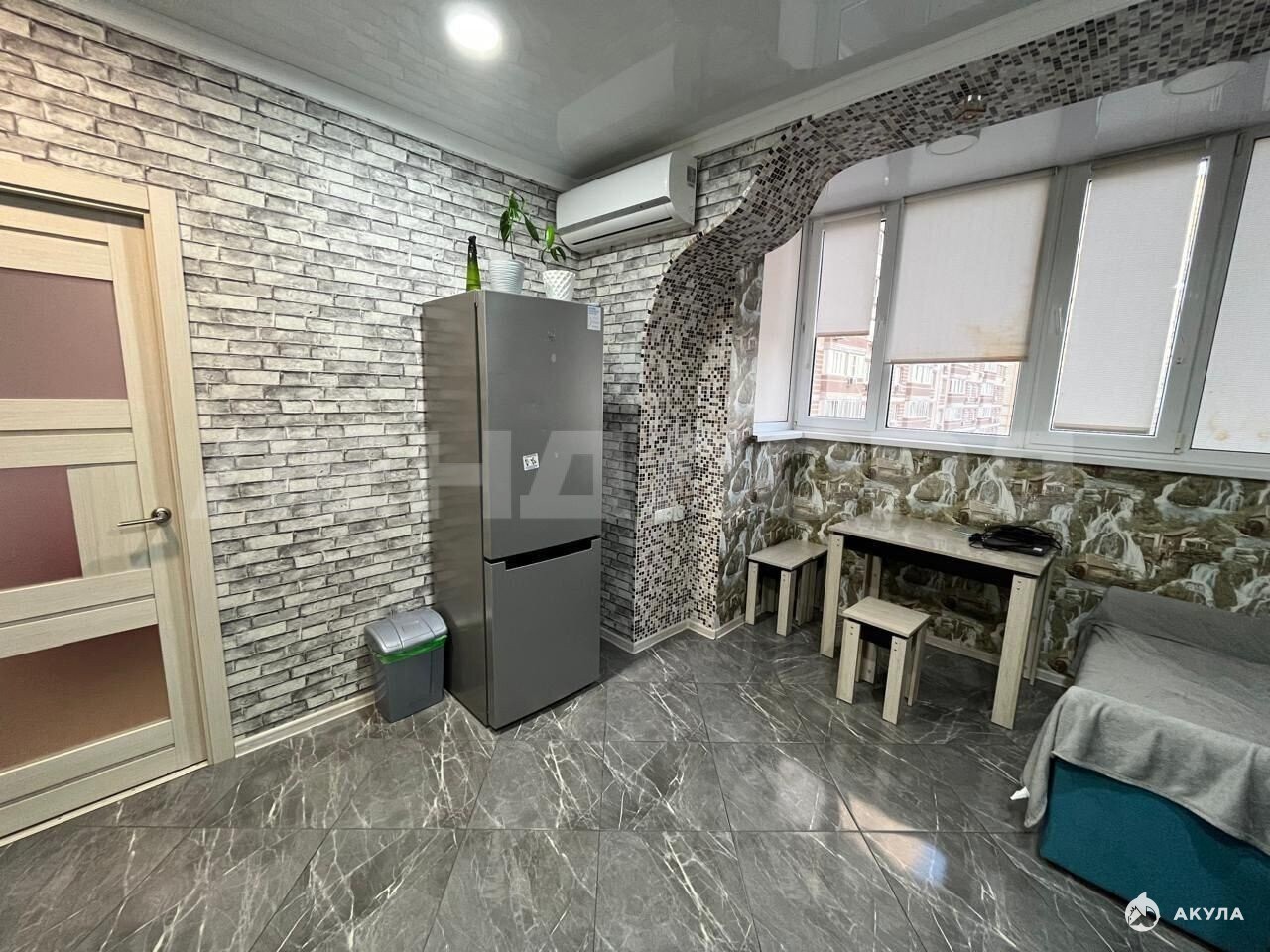 В квартире выполнен качественный дизайнерский ремонт, который делали для себя, на полу ламинат, встроенная кухня, комната большая и имеет все необходимое для проживания, спальная комната зонирована. Квартира оборудована всей необходимой мебелью и техникой. Кухня очень просторная и светлая. Вид из окон во двор!