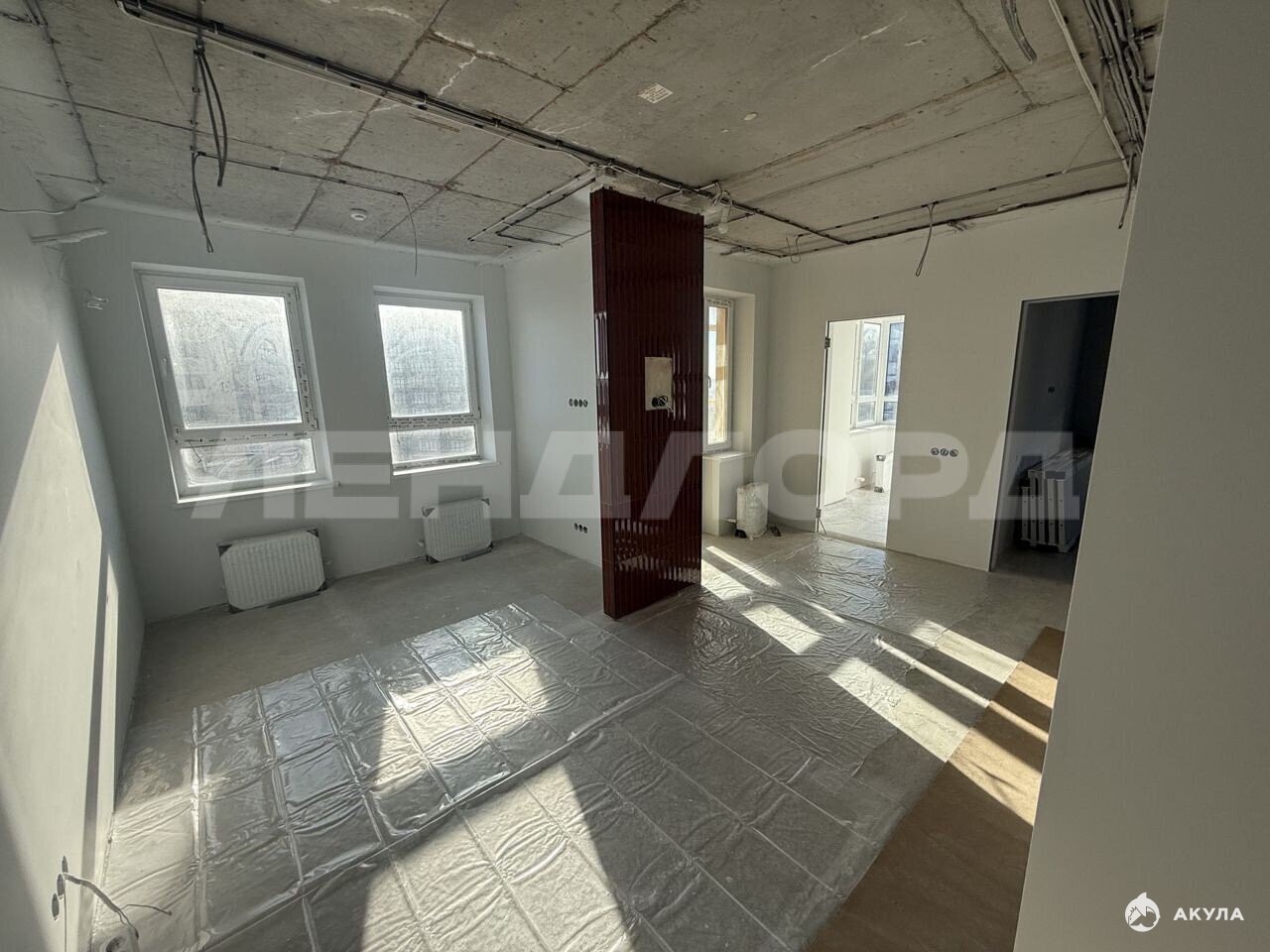 Для переезда в квартиру необходимы следующие работы: монтаж напольного покрытия (клеевой кварц-винил), натяжной потолок и навес дверей (монтаж уже оплачен производителю).