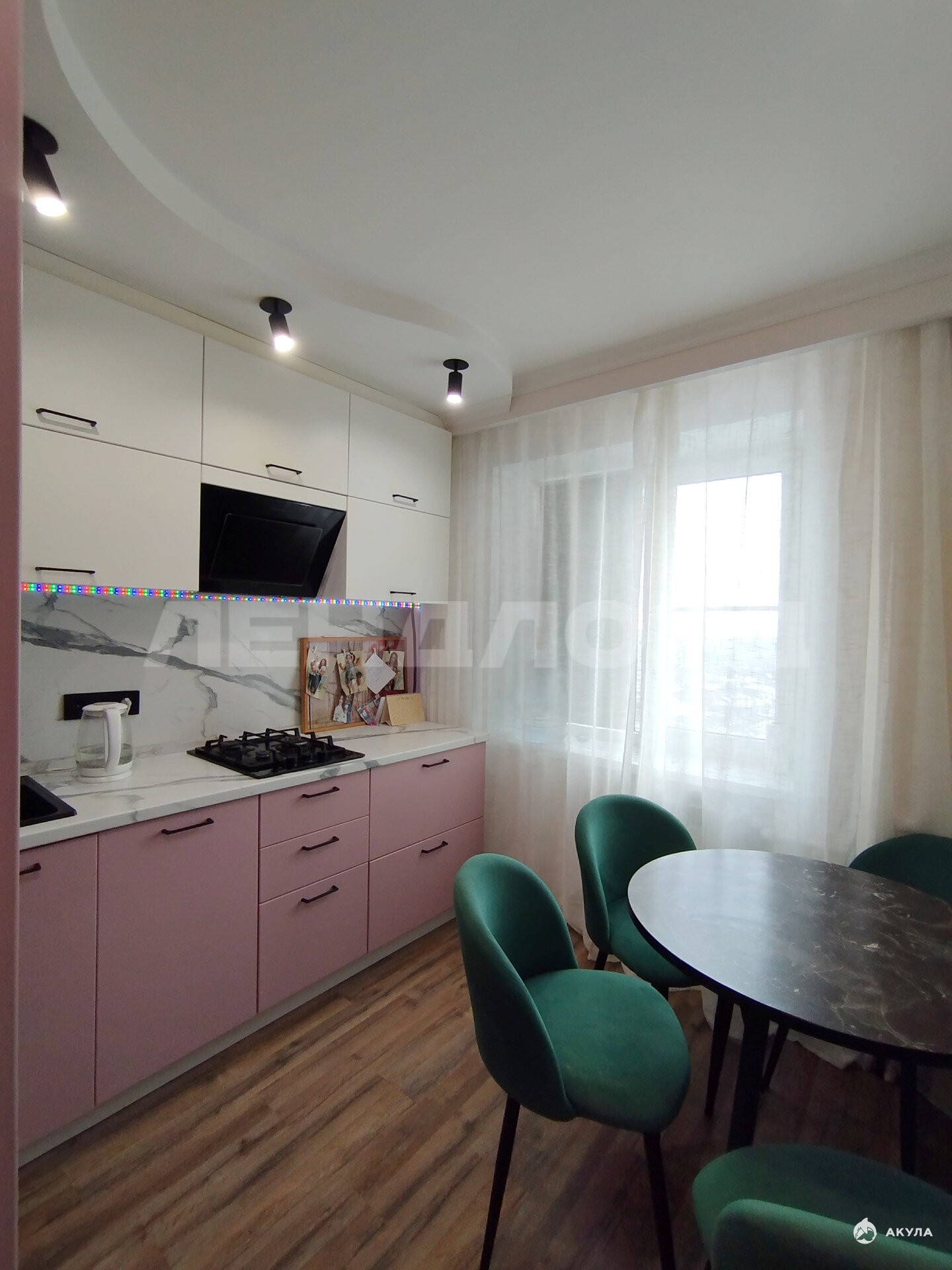 Новым владельцам остается кухонный гарнитур и встроенная бытовая техника.