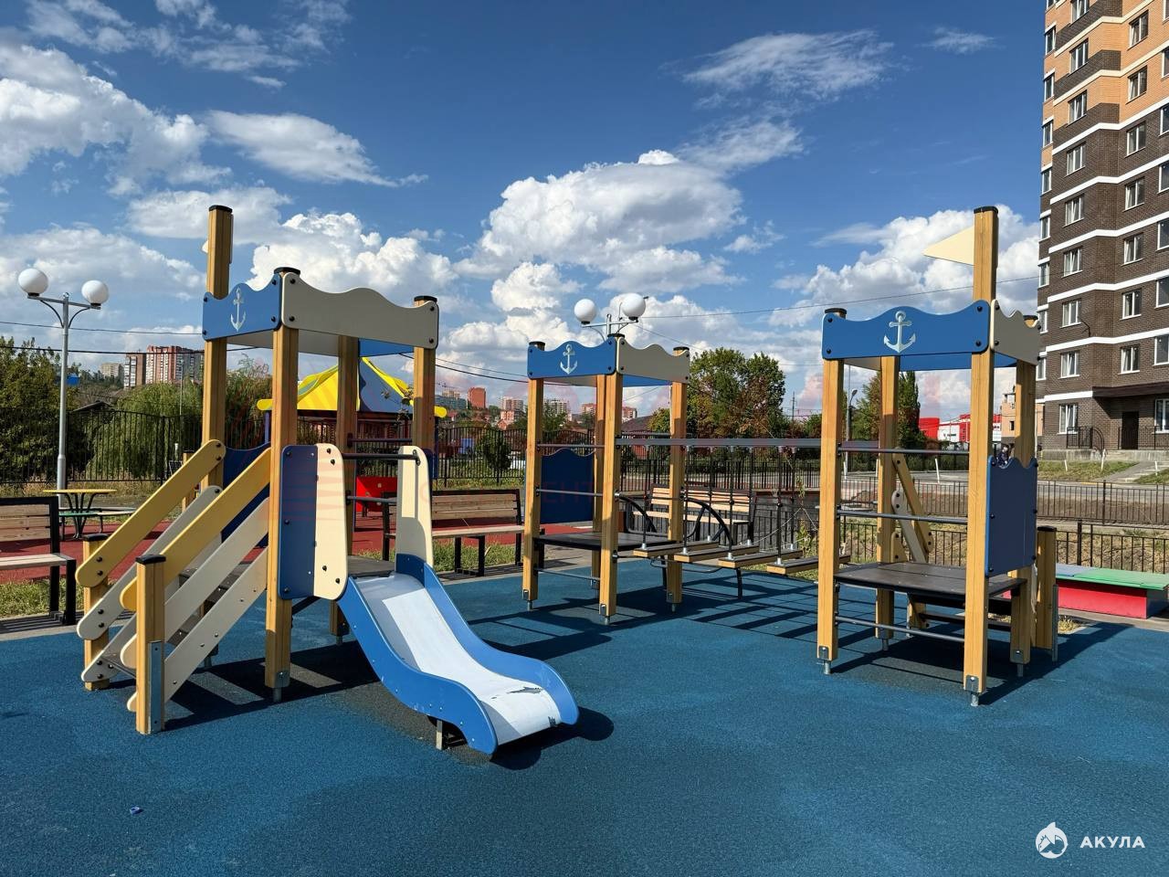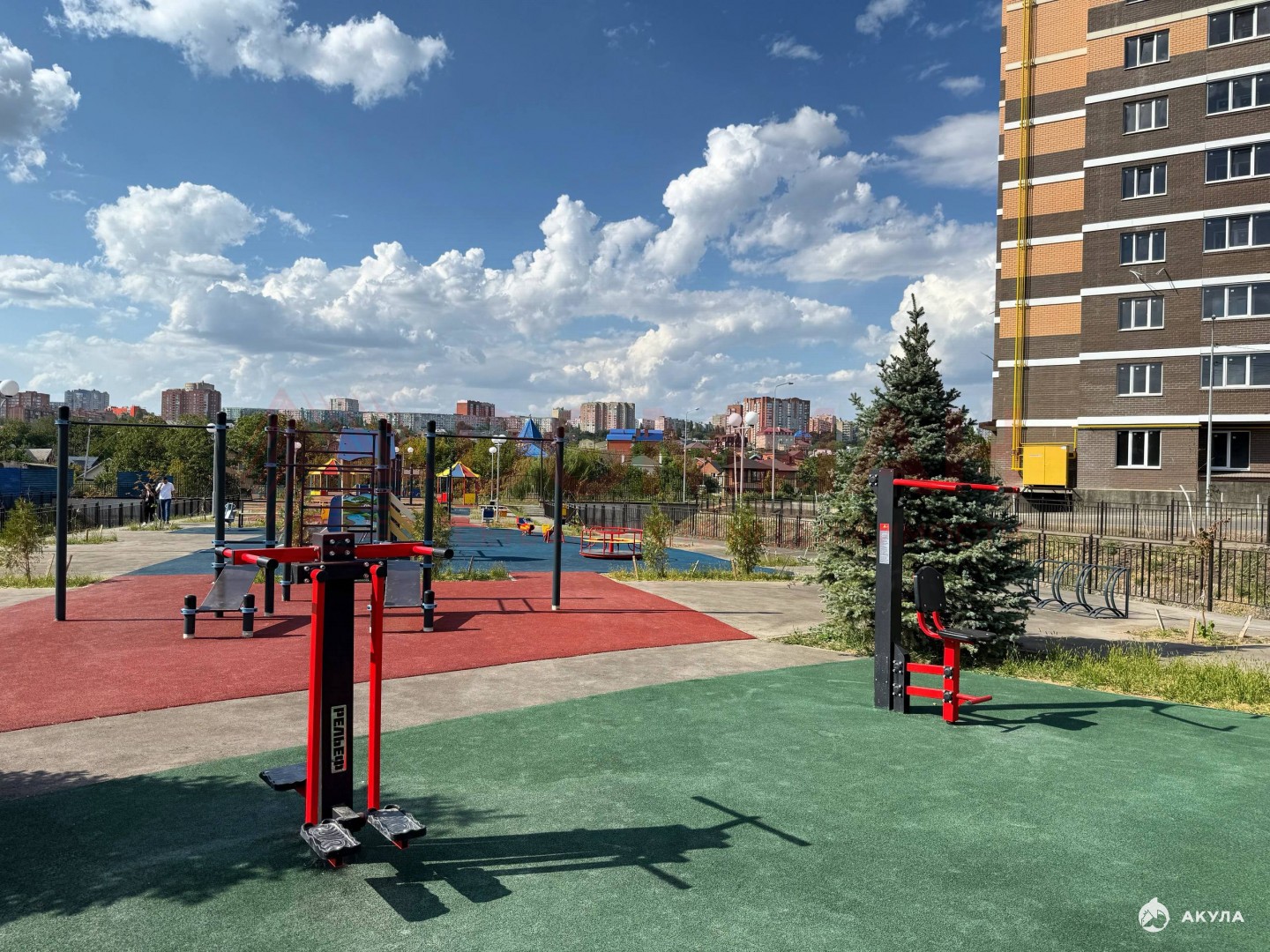Есть обустроенные детские и спортивные площадки.