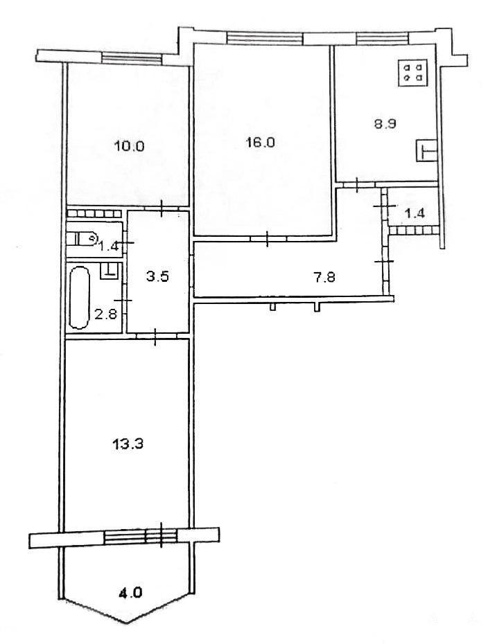 - Планировка: кухня 9 м², изолированные жилые комнаты 16/13.3/10 м², лоджия 4 м²