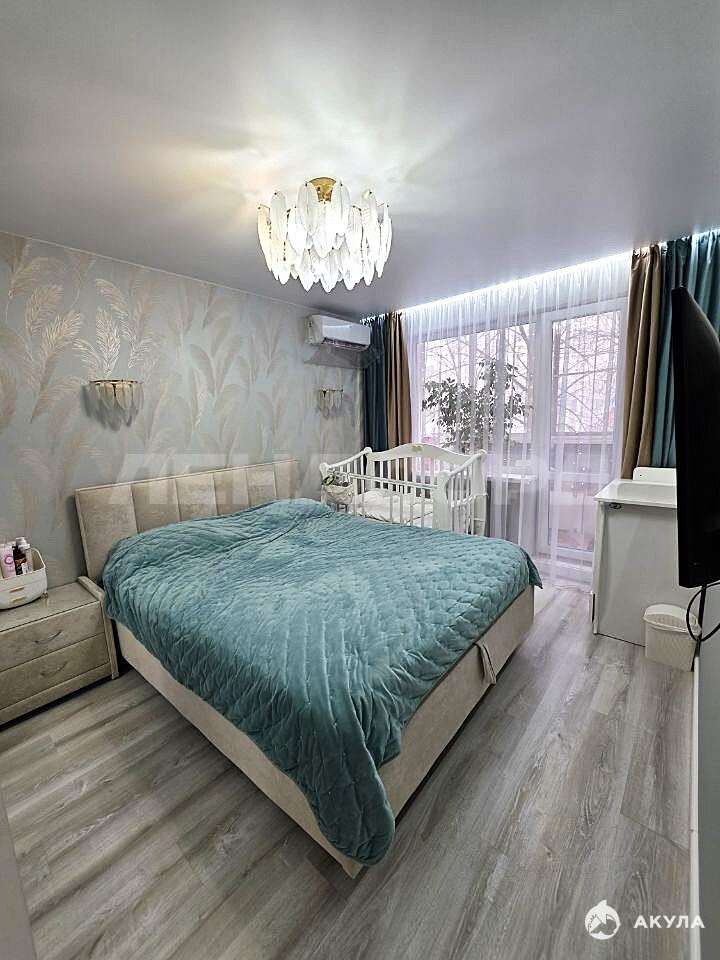 В квартире выполнен современный ремонт. Три изолированные комнаты с планировкой "бабочкой", два застекленных балкона.