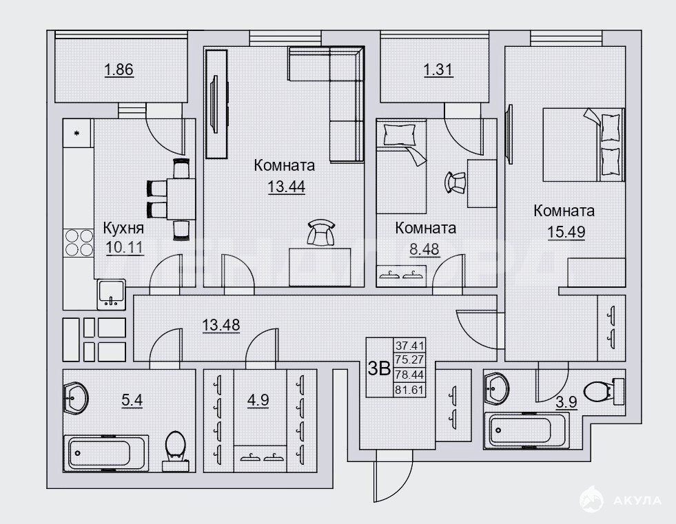 - 10.11 м²